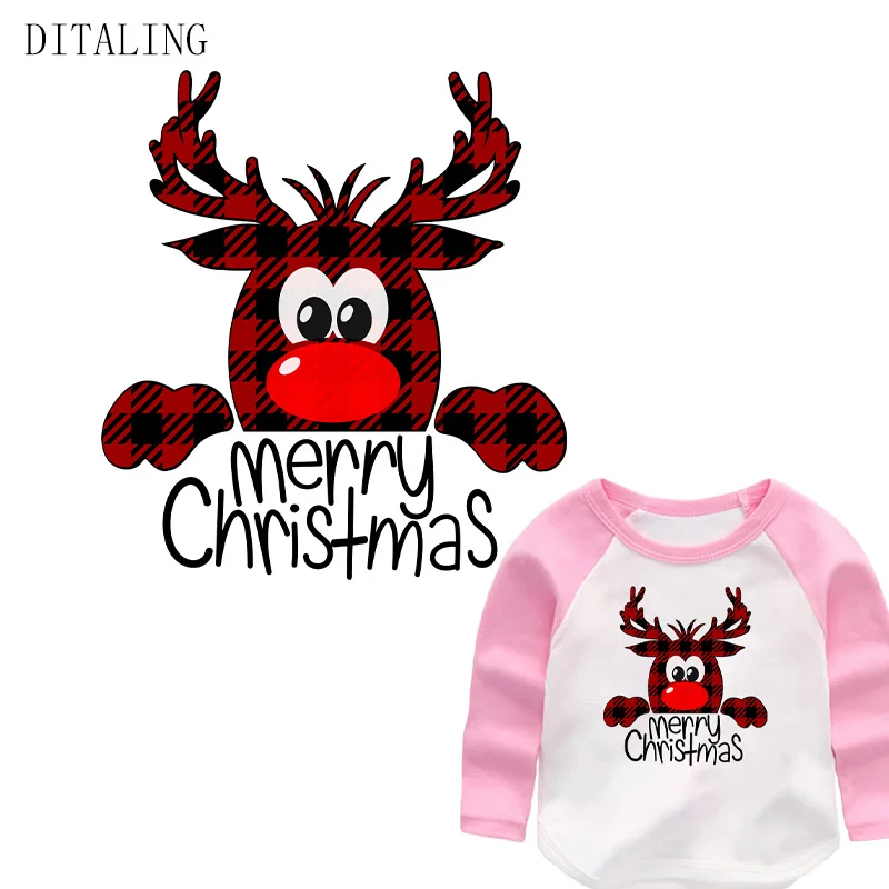 Рождественская нашивка для одежды, термонаклейка с оленем, моющаяся детская футболка, толстовка, термопереводные нашивки, аппликация для детей