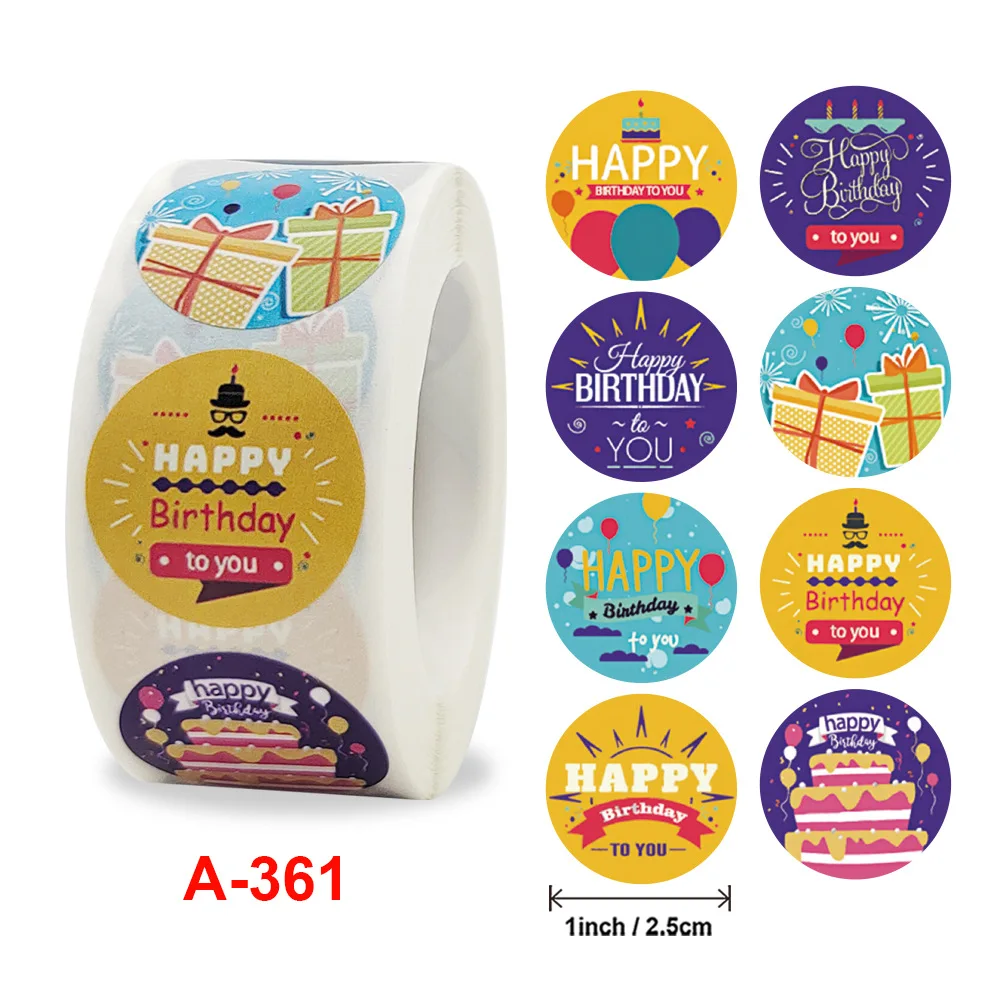 500 шт.рулон Круглый с днем рождения Цвет воздушных шаров тортов и ...