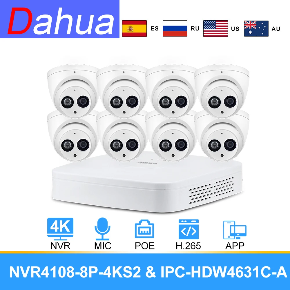 Dahua 4K 4CH POE IP камера комплект 6MP IPC-HDW4631C-A Buit-in микрофон и NVR4104-P-4KS2 H265 + Onvif CCTV видео рекордер система безопасности