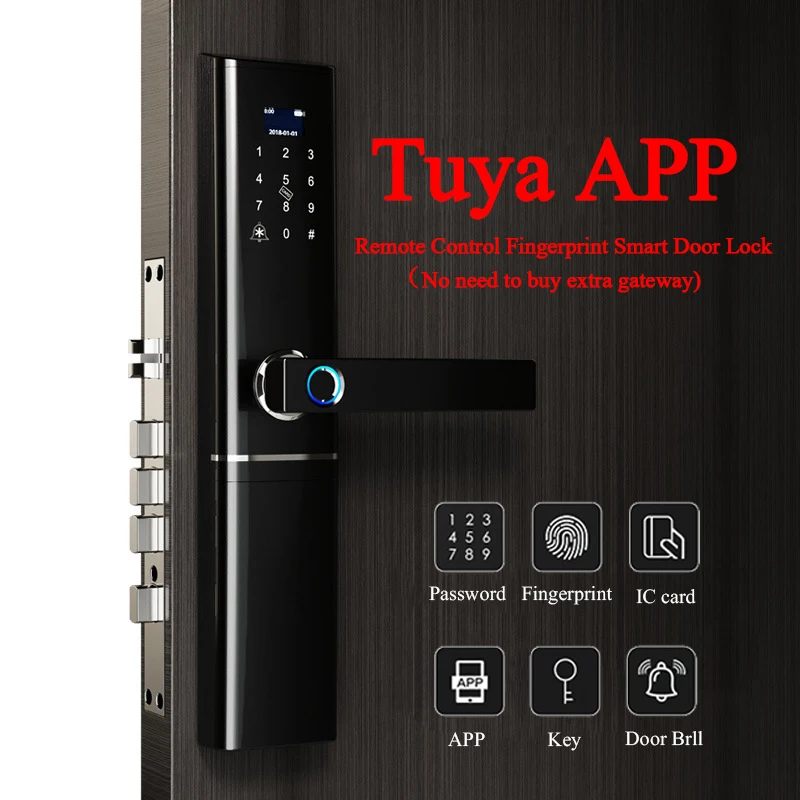 Умный дверной замок с отпечатком пальца, интеллектуальный электронный замок, проверка отпечатка пальца с картой пароля, разблокировка через приложение Tuya