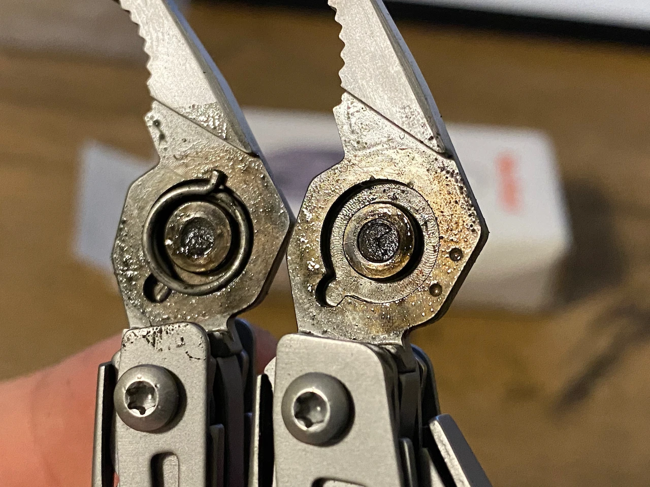 Пришло через 2 недели. Коробка была сильно помята с надрывами. Есть небольшой люфт. Нож острый.