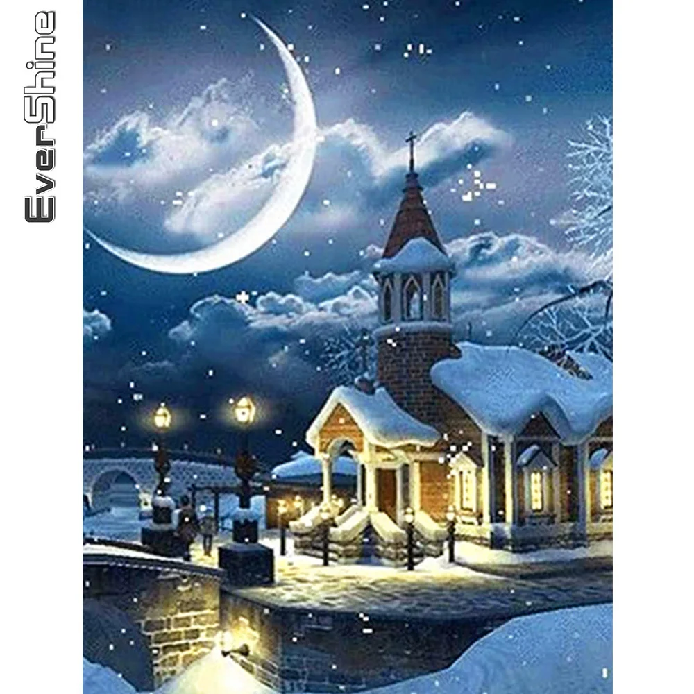 Evershine алмазная живопись Дом Новое поступление Алмазная вышивка зимний пейзаж наборы для вышивки крестиком Мозаика сделай сам подарок ручной работы
