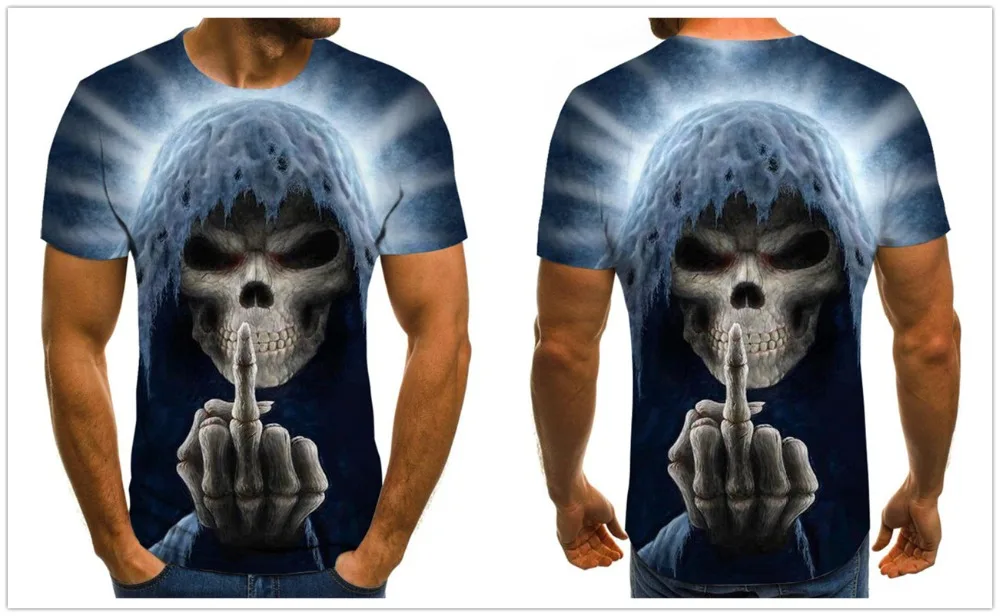 Новинка 2021, мужские футболки в стиле панк с 3D-принтом черепа и Жнеца, летняя модная смешная одежда с круглым вырезом, дышащие уличные Топы большого размера