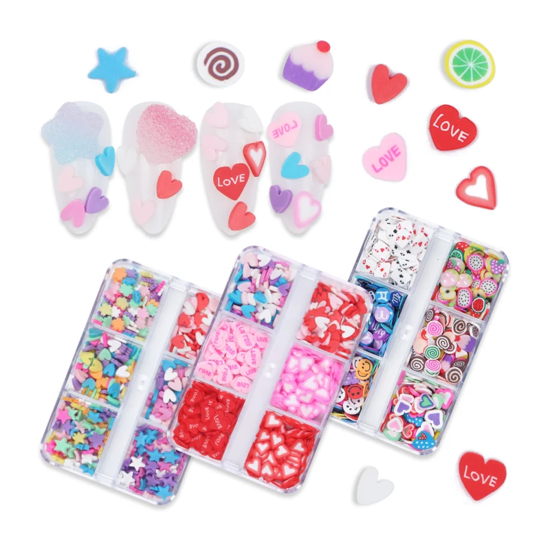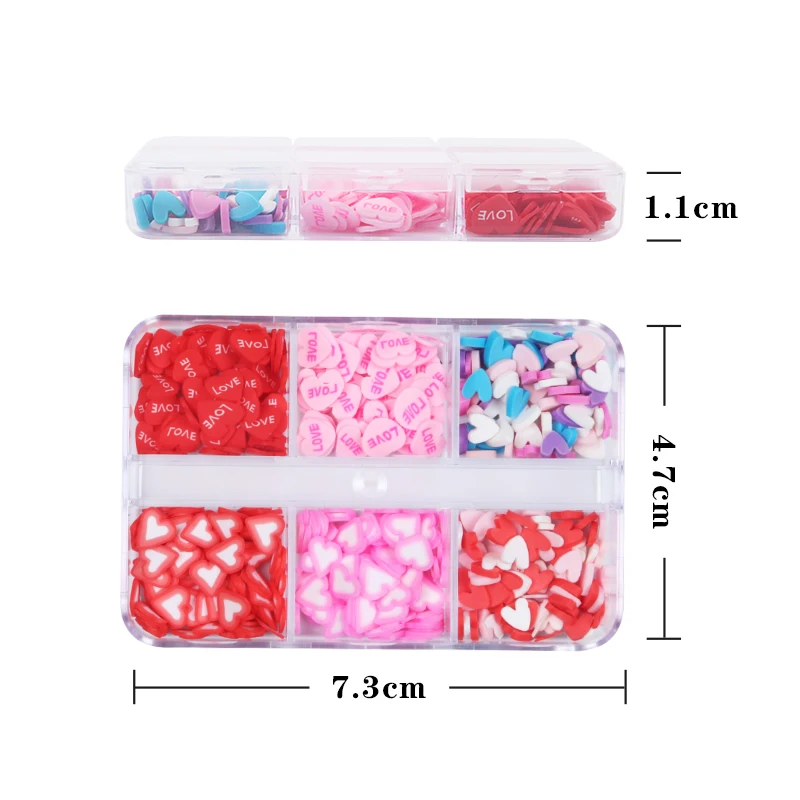6 решеток, полимерные украшения для дизайна ногтей Love Heart, для маникюра, на День святого Валентина, полимерные глиняные хлопья, аксессуары для ногтей DIY