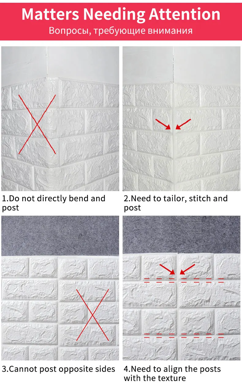 Характеристика:1: трехмерная декоративная мягкая пена, защита от столкновений для детей, забота о вашей семье.2: Безопасность и защита окружающей среды, нетоксичный запах, подходит для семейного безопасного домашнего пространства.3: Реалистичный, естественный эффект кирпичного узора, простой и современный стиль.4: Бесплатный DIY, простой самоклеящийся дизайн, установка, повседневный коллаж, произвольный крой.5: сравнение обоев с улучшенным эффектом шумоподавления.Способы установки и инструментыПодготовка: Очистите поверхность с адгезией, например: поверхность из дерева, поверхность из стекла, не Пылезащитная стена, нажмите на дно шпатлевки и так далее.Паста: на заднюю крышку разорвана бумага, приклеенная К вспомогательным инструментам: ножницы, ножВнимание: пожалуйста, купите достаточное количество единиц товара, чтобы убедиться, что они поставляются из одной партии, чтобы избежать разницы в цвете.