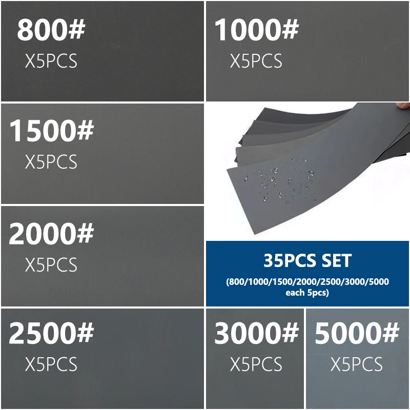 CMCP абразивная Шкурка наждачная бумага для металла, дерева, ювелирных изделий, отделки автомобилей, 35 шт., зернистость 800-5000, шлифовальная бумага