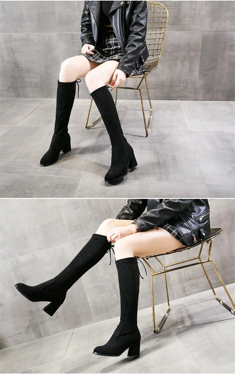 Женские сапоги до колена на высоком каблуке, привлекательные черные сапоги для улицы и дома, удобная женская обувь, 2021