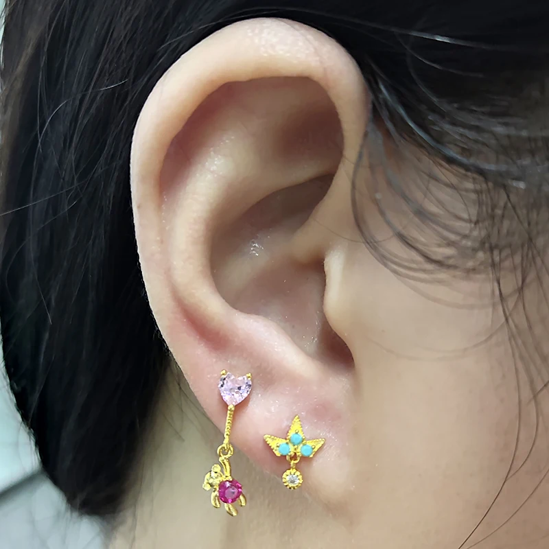 Серьги-гвоздики женские летние в форме сердца