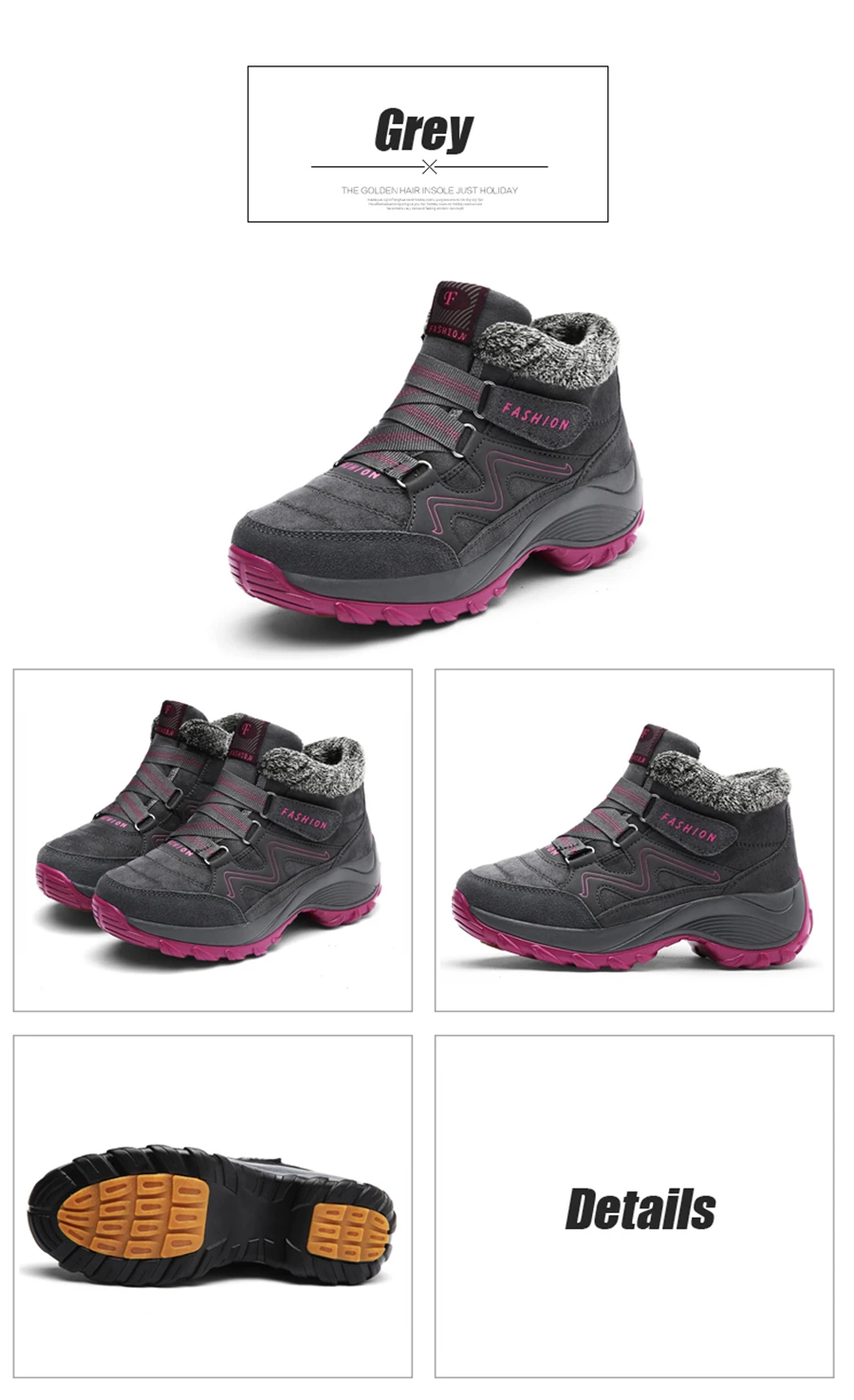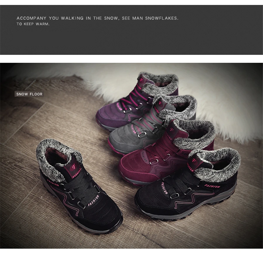 Зимние женские ботинки Lanfeng для снежной погоды, женские Теплые ботильоны с эффектом пуш-ап, женские водонепроницаемые кроссовки на высокой танкетке, походная обувь с резиновым мехом, серые, 38