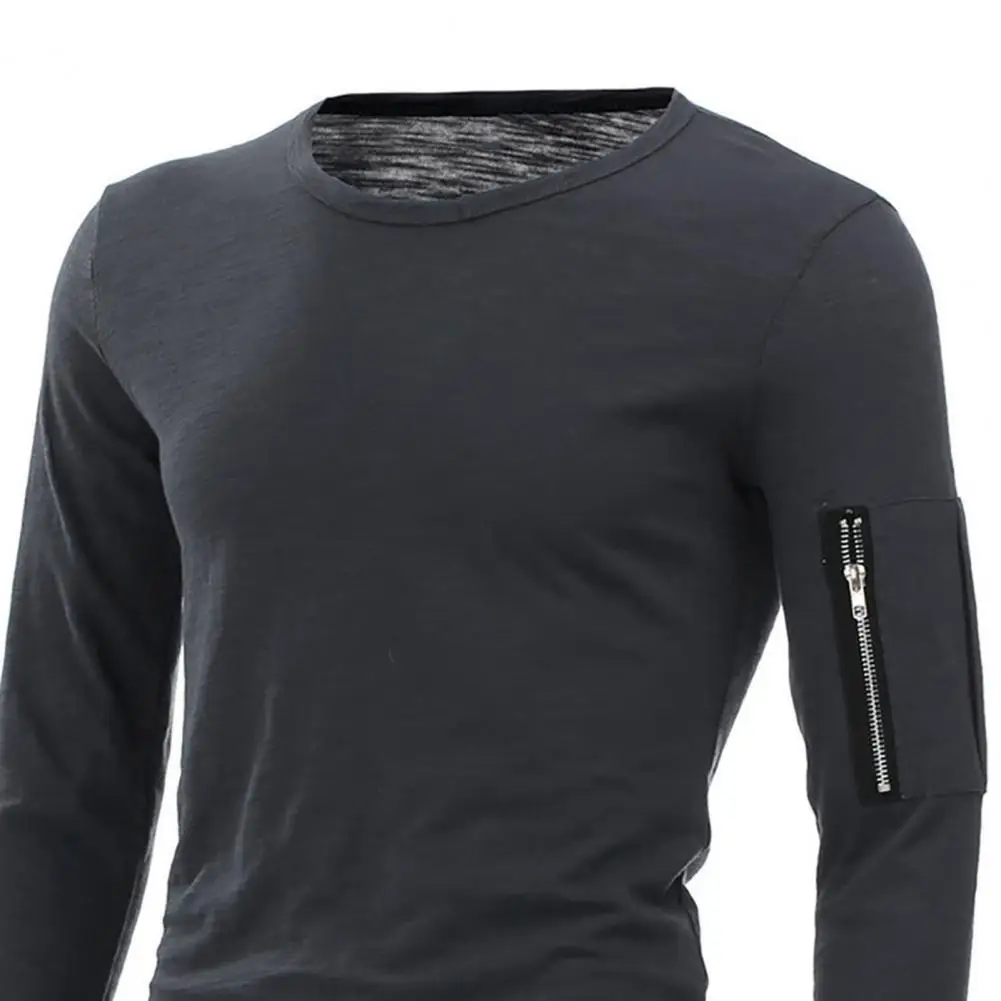 Футболка мужская повседневная, спортивная одежда для фитнеса, пуловер на молнии, однотонный облегающий Топ с длинным рукавом, уличная одежда