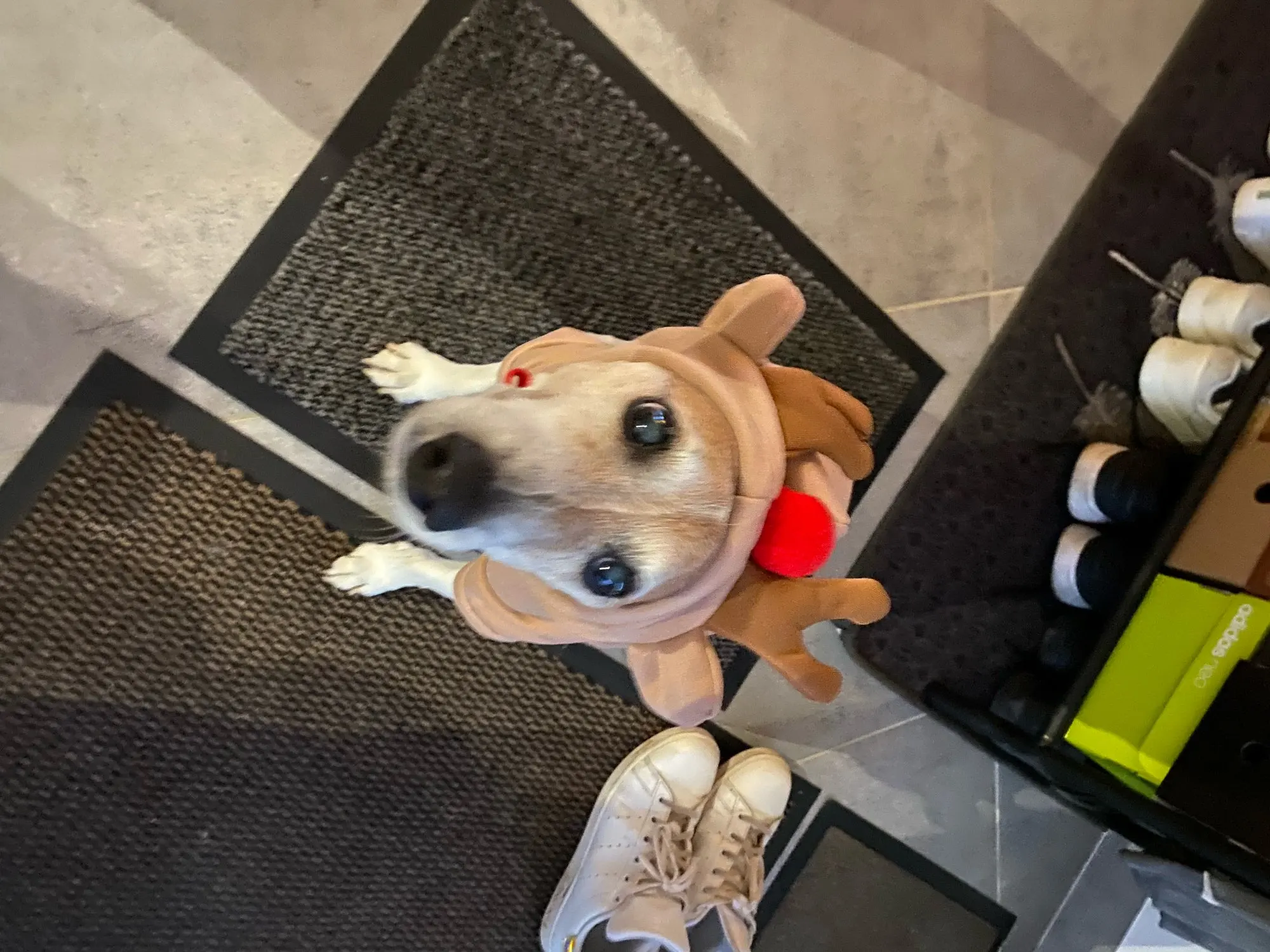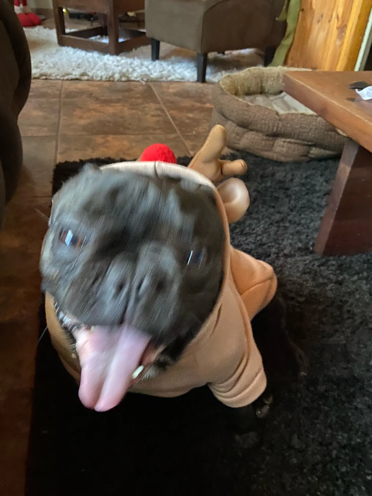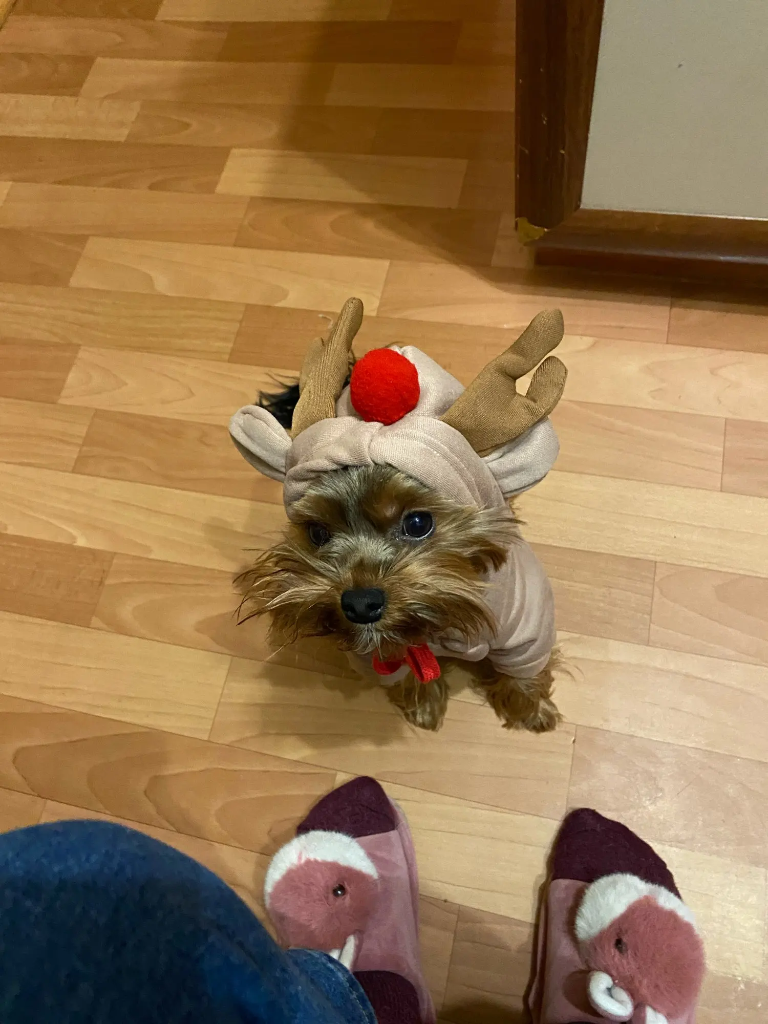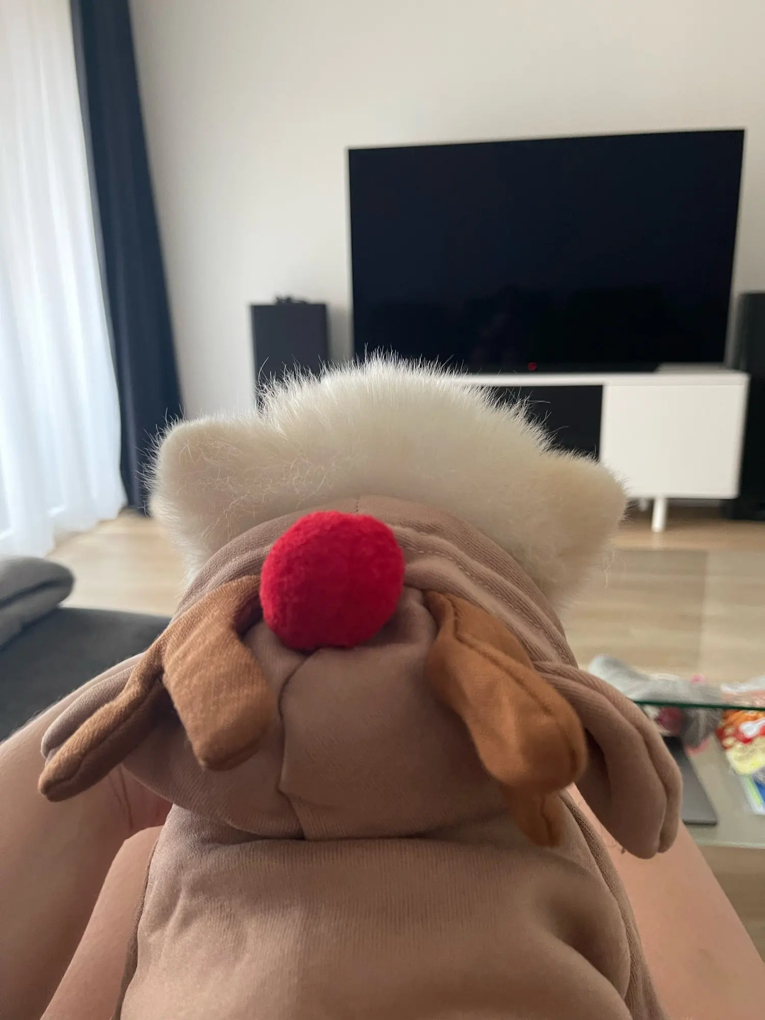 genial ha llegado un reno, de papá Noel, a mi casa. jajajajajaja