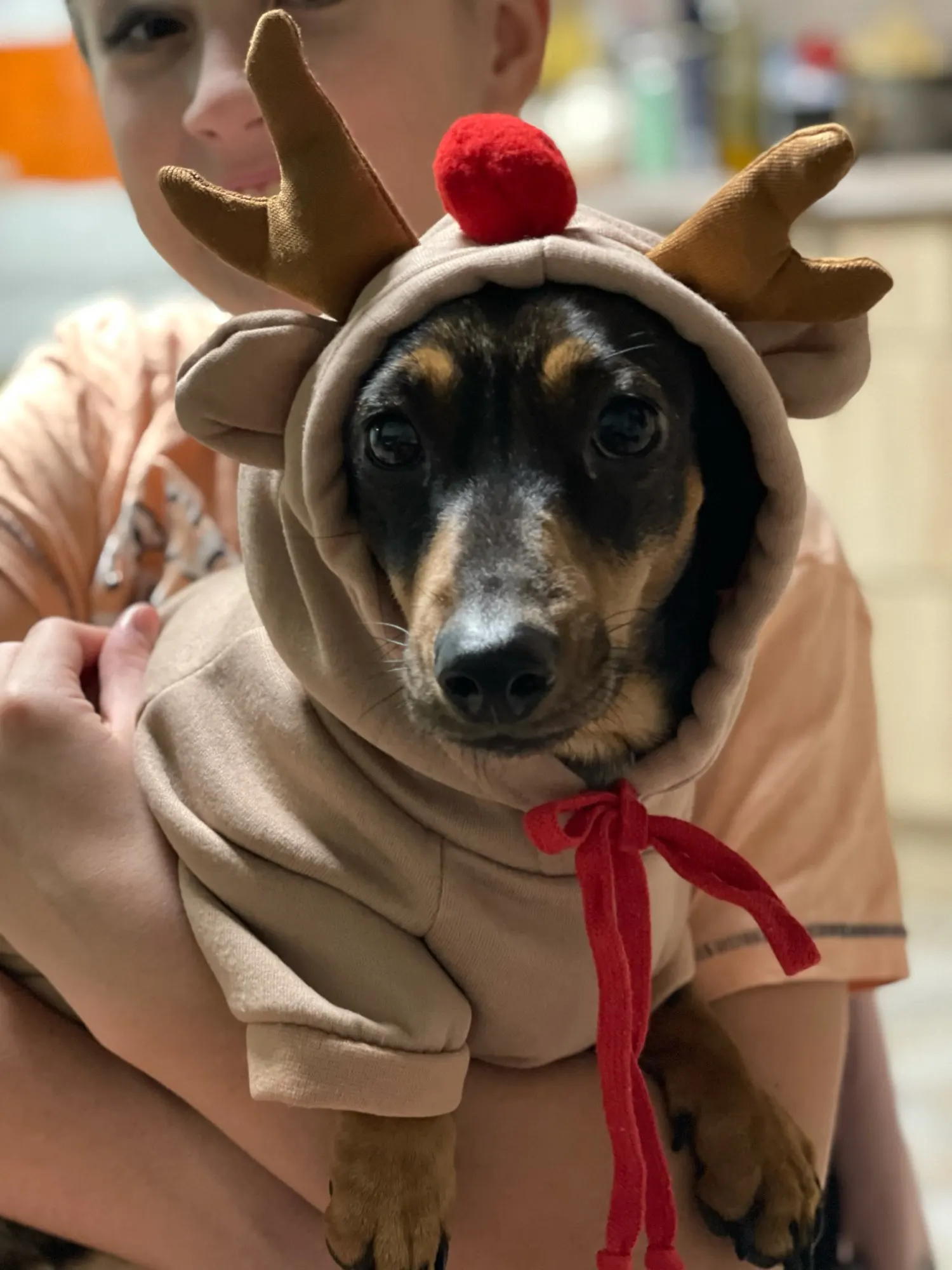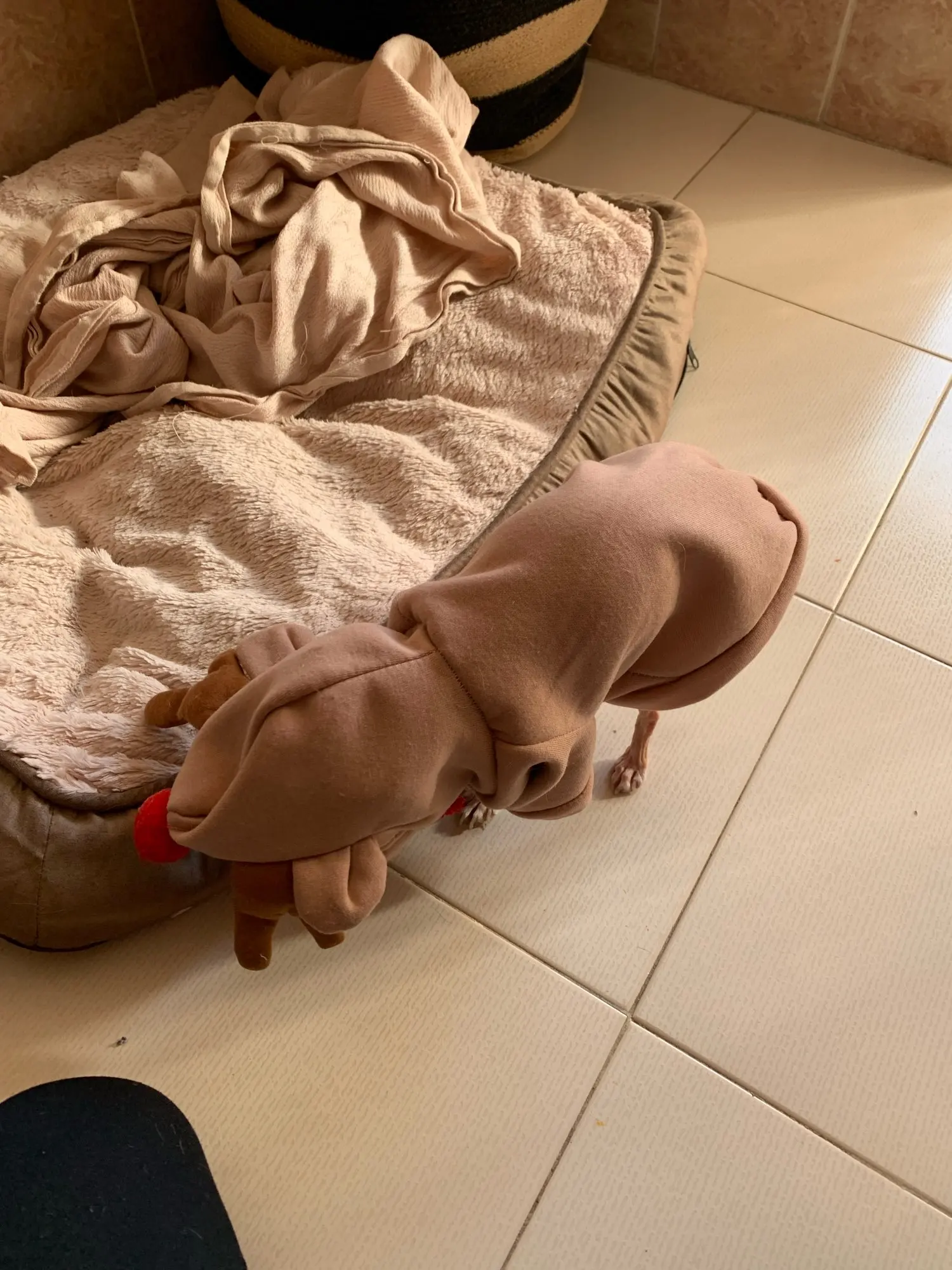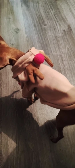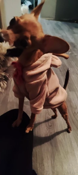 Очень мило, а также это как теплая толстовка! В моем случае это было для стандартной таксы, и это становится немного большим, но это очень красиво.