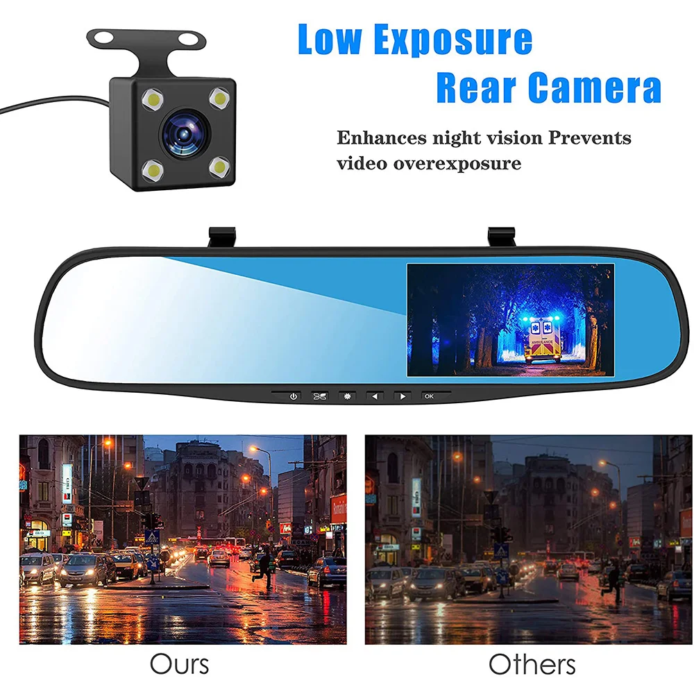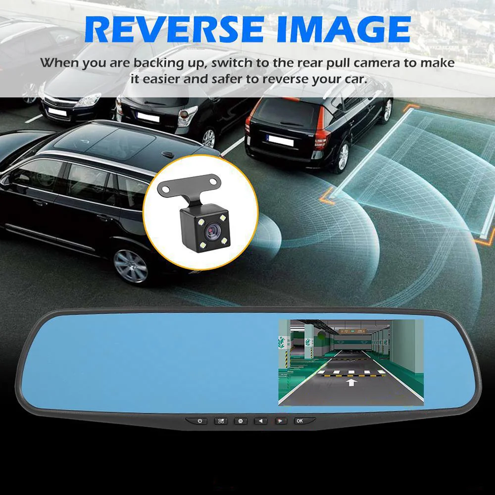 Зеркало-видеорегистратор, 4,3 дюйма, FUll HD, передняя и задняя камеры