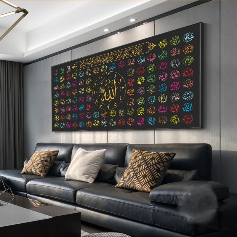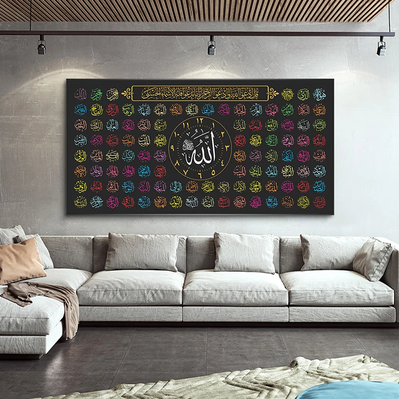 Исламские картины на холсте с 99 именами Аллаха, мусульманская каллиграфия, настенные картины с принтом, Плакаты для гостиной, домашний декор