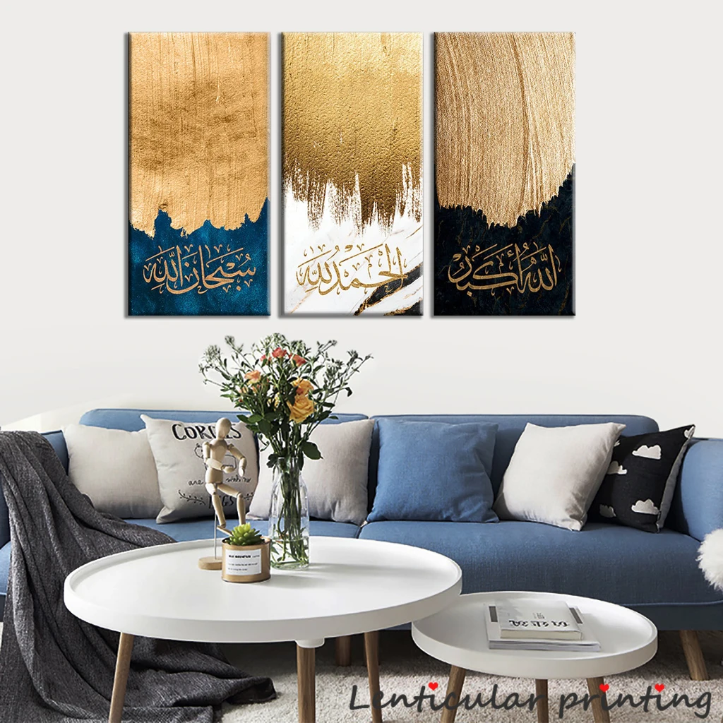 Золотая Исламская Настенная картина, Постер, религиозные стихи, Коран, печать, Настенная картина, холст, живопись, современный мусульманский Декор для дома
