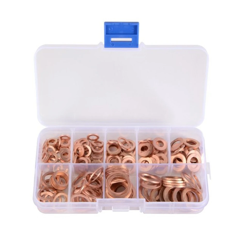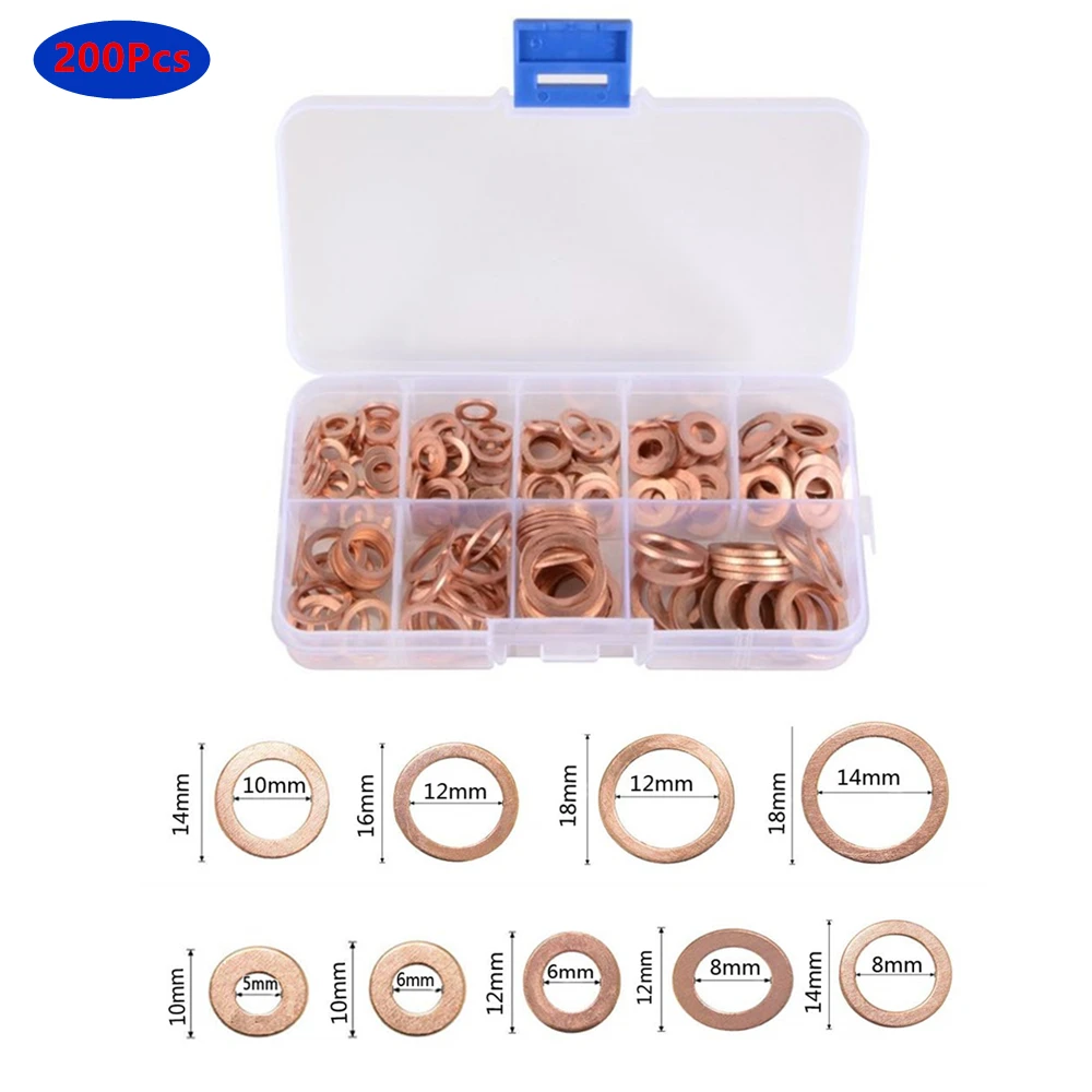 Высококачественный медный материал, температура плавления до 1083 ℃.Хорошая Электропроводность и теплопроводность.200 шт твердая медная шайба пробки поддона набор.Все содержится в компактном и просвечивается через разделенный пластиковый корпус.Отлично подходит для штепсельных вилок, воды, топлива и гидравлических фитингов.Шайба пробки поддона набор для всех типов двигателей будь то автомобиль, морской, генераторы, машины и завод.