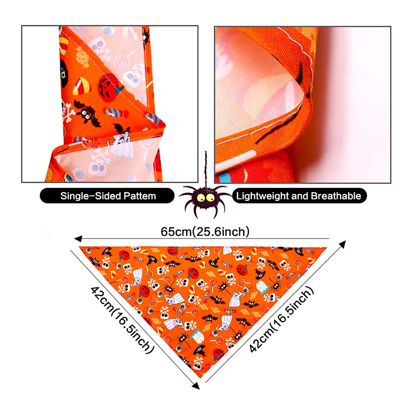 Треугольный шарф на Хэллоуин для домашних животных, с принтом тыквы и принтом черепа, полиэфирный материал, удобный и приятный для кожи.