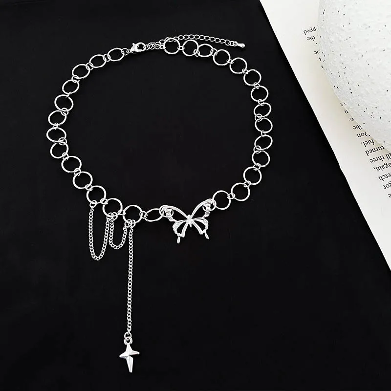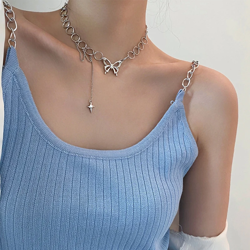 Женское Ожерелье-бабочка со звездой, подвеска в стиле панк, круглая цепочка, Женский чокер, новая трендовая цепочка на шею с кисточками, Женские Ювелирные изделия