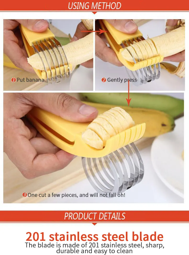 2. Основной корпус нарезки бананов изготовлен из пищевого материала PP, который безопасен и гарантирован