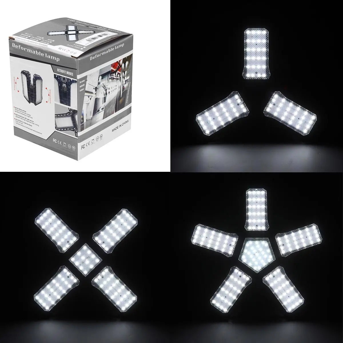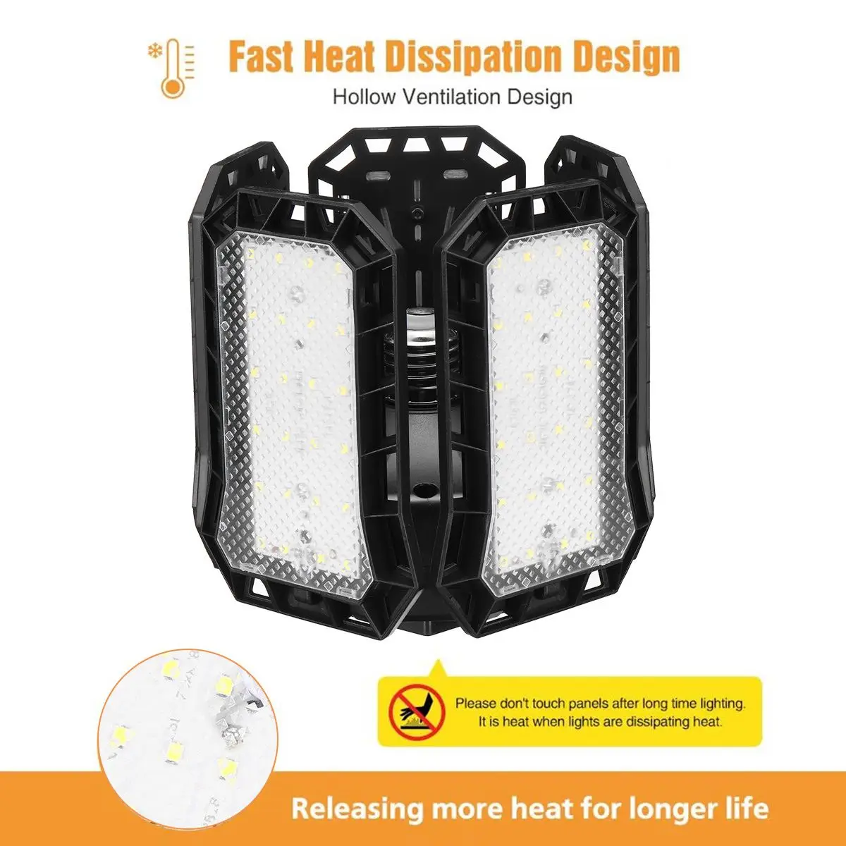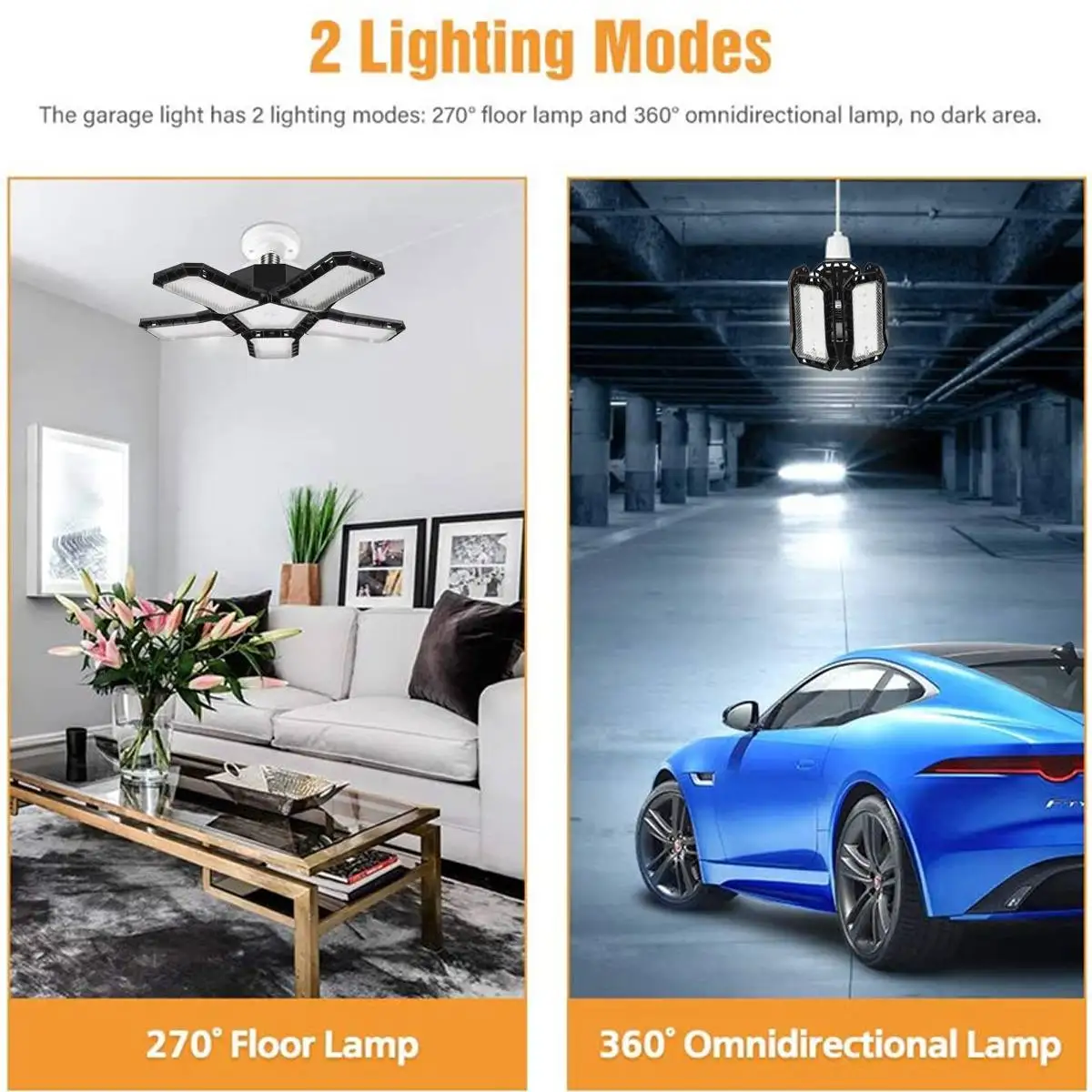 【 5/4/3 регулируемый светодиодный светильник 】: Каждый светодиодный светильник s 90 градусов регулируется, который может иметь идеальный гаражный светильник, изгиб распределения в соответствии с вашим приложением, это позволит покрыть светильник на 360 ° площади.