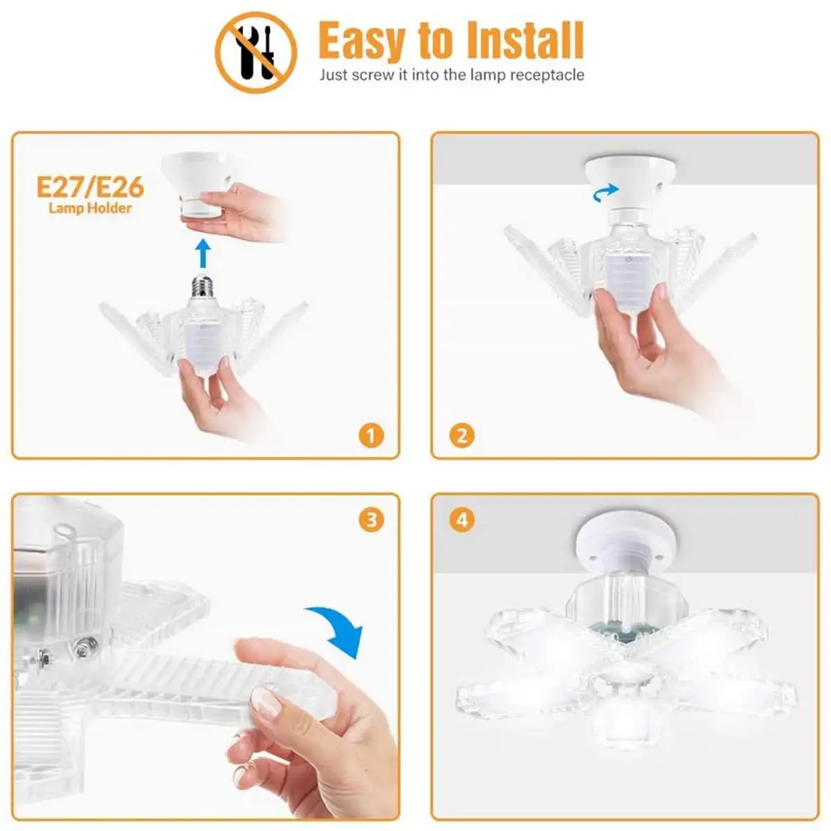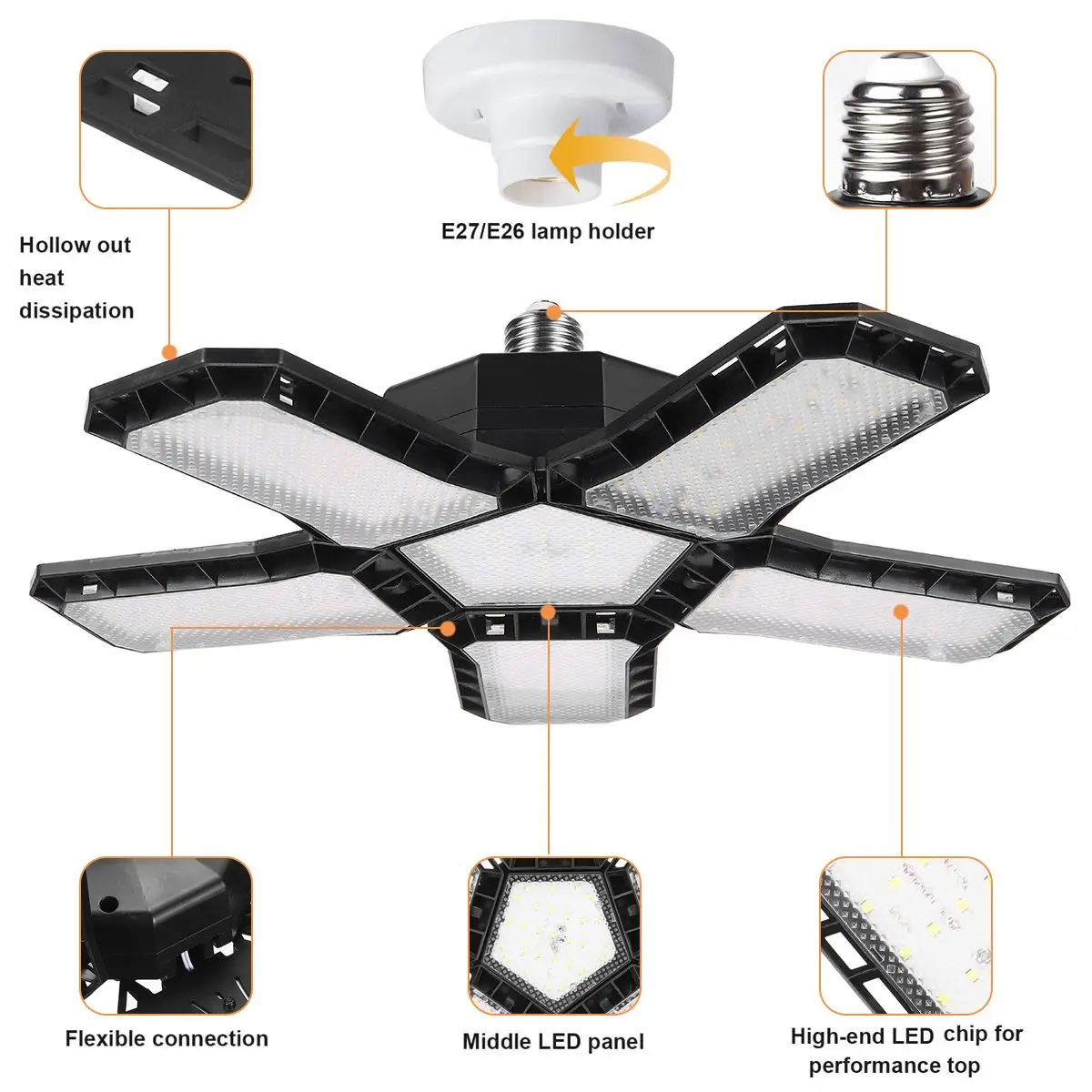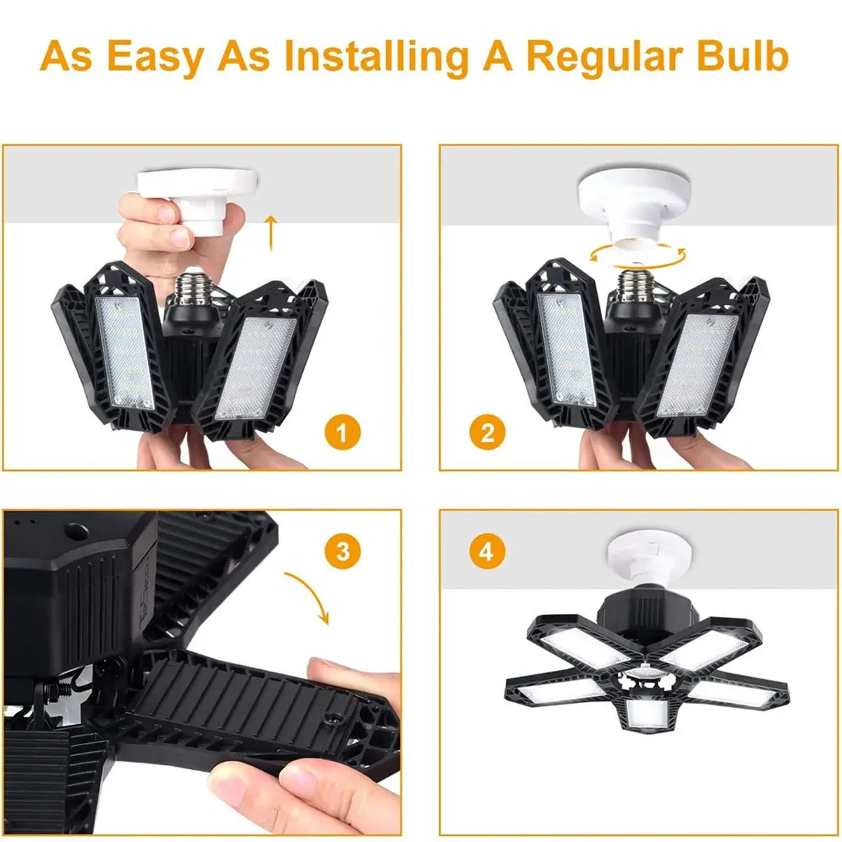 【 5/4/3 регулируемый светодиодный светильник 】: Каждый светодиодный светильник s 90 градусов регулируется, который может иметь идеальный гаражный светильник, изгиб распределения в соответствии с вашим приложением, это позволит покрыть светильник на 360 ° площади.