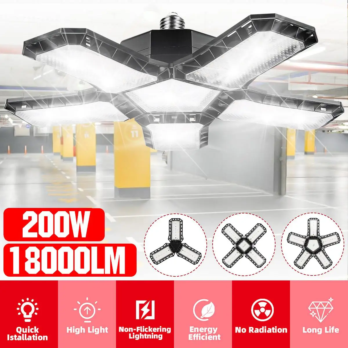 Деформируемый промышленный светильник Е27, 200 лм, Вт, светодиодный вентилятор для гаража, светильник ъяркая промышленная лампа для высоких промышленных помещений для мастерской