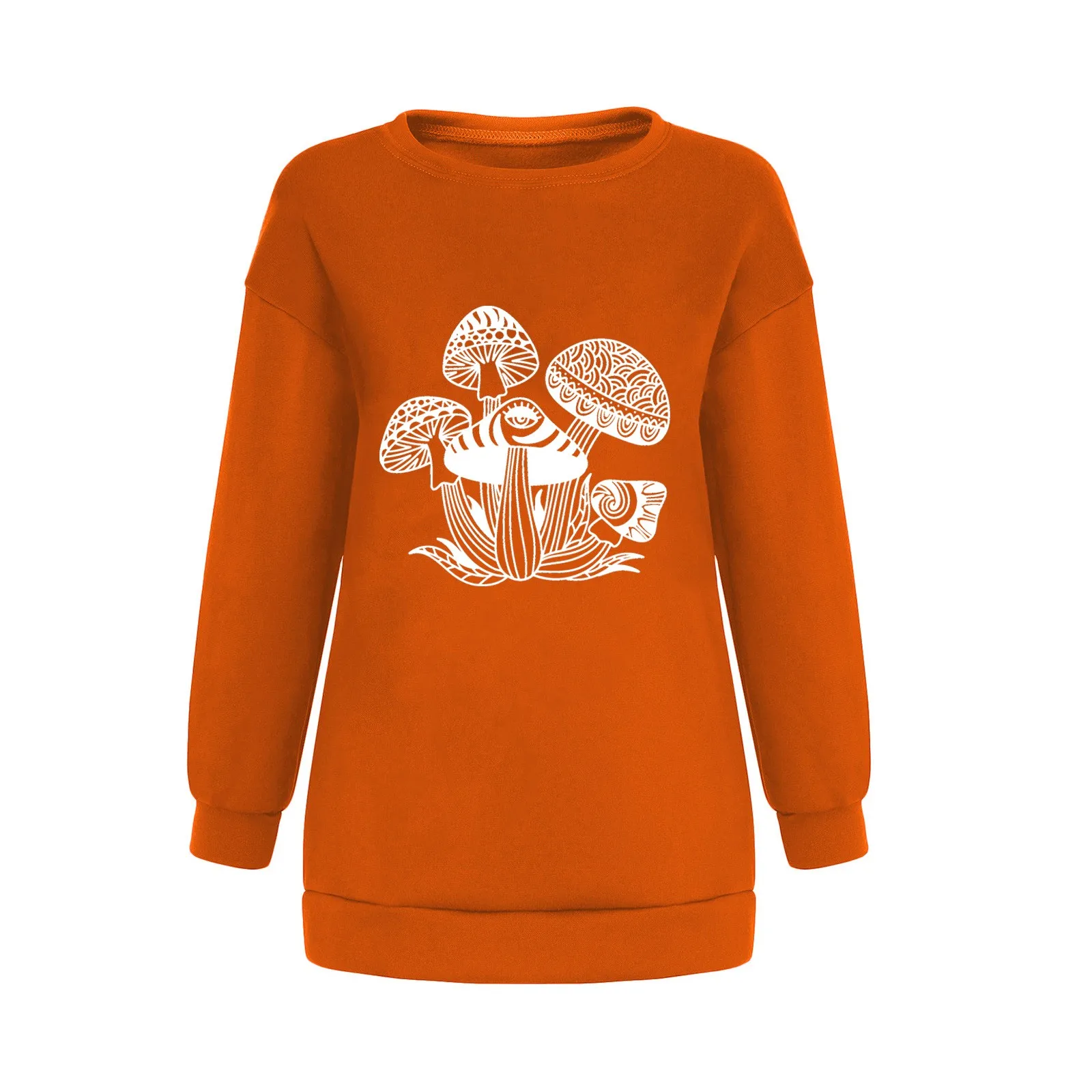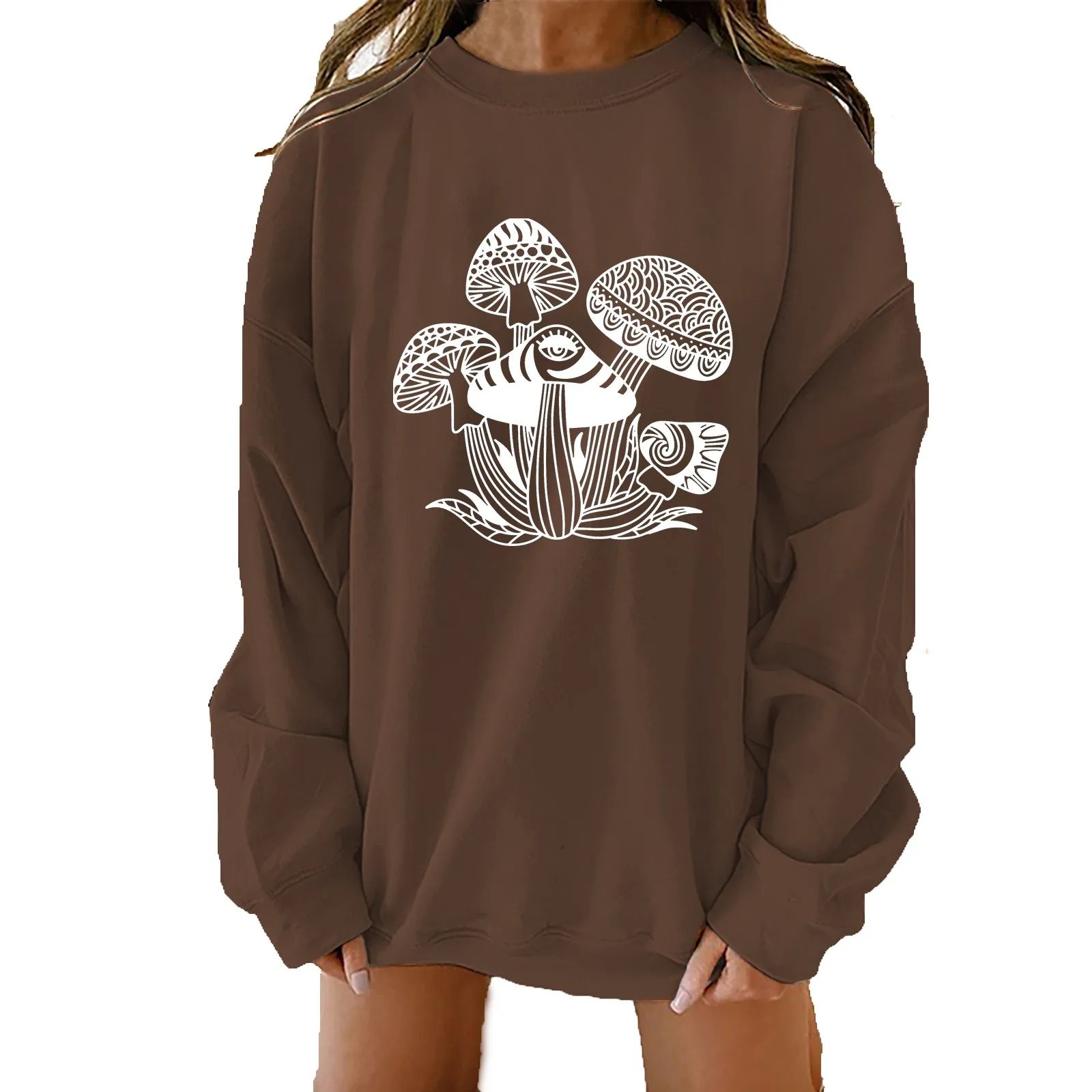 Женский свитшот с принтом в виде грибов, Осенний винтажный Свободны...