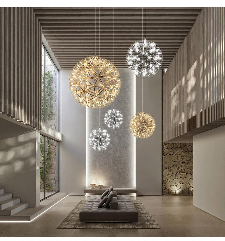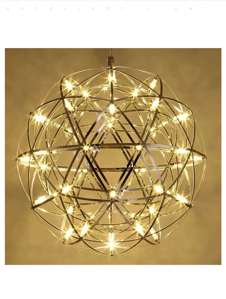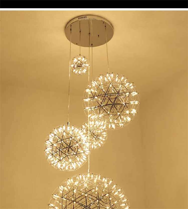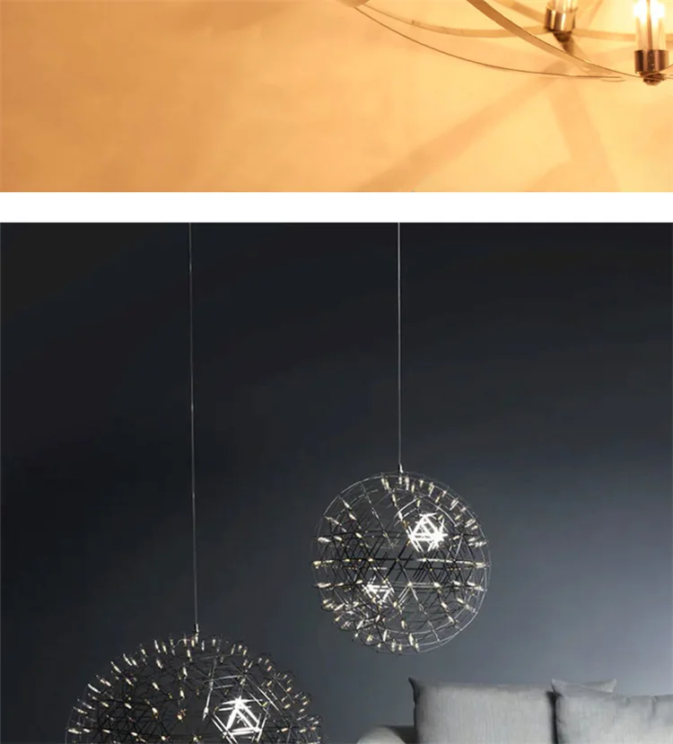 Современная светодиодсветодиодный люстра Kobuc в стиле лофт с искровым шаром, подвесной светильник из нержавеющей стали для магазина, торгового центра, декоративное освещение