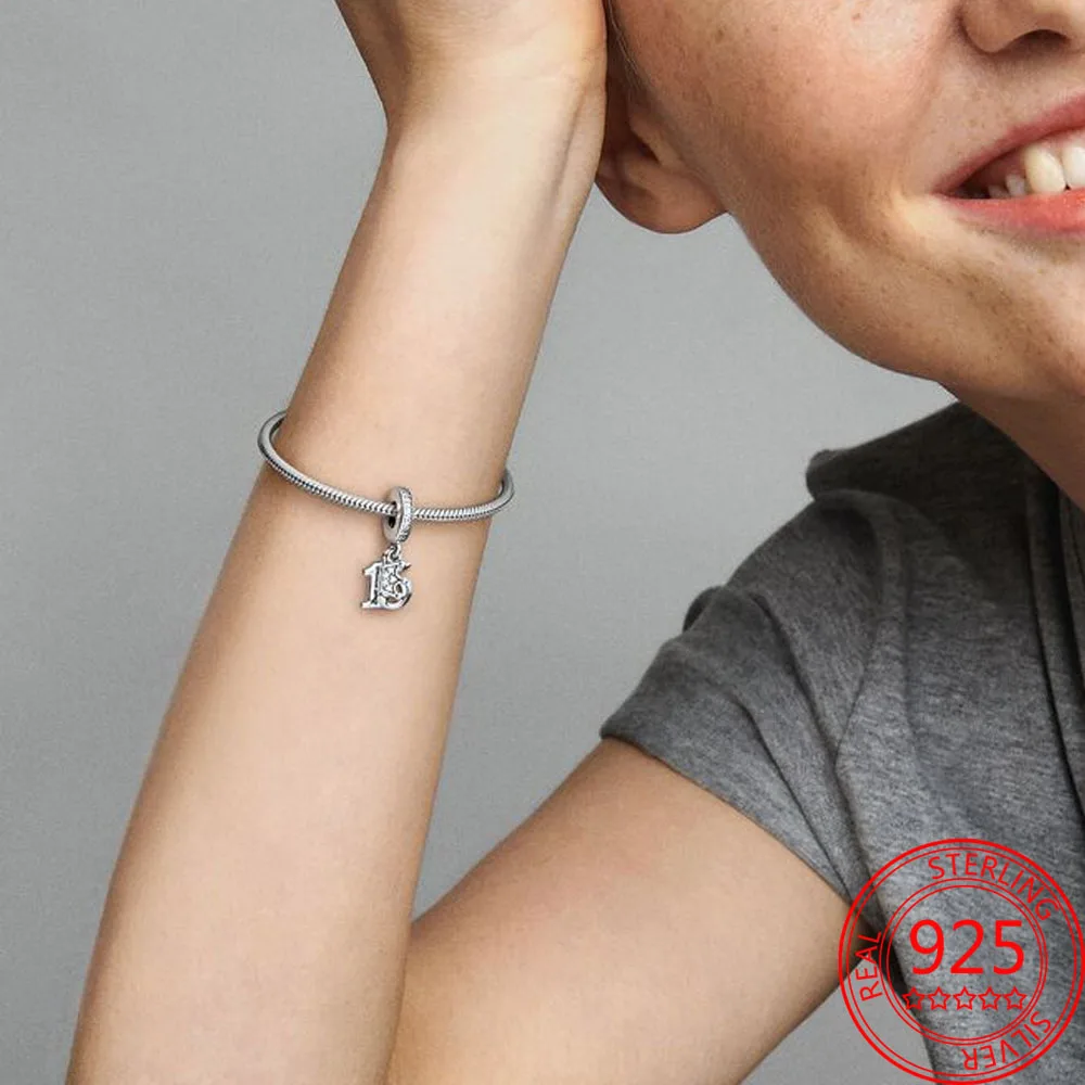 Подвески-цифры из серебра 925 пробы для браслетов Pandora, 10 видов