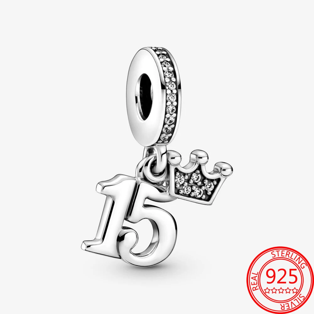 Классические серебряные подвески в виде короны для 15-го дня рождения, подходят для браслетов Pandora и браслетов, изящные подарочные украшения для девочек