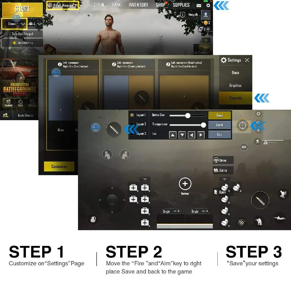 4. Отрегулируйте кнопки съемки и прицеливания под тачпадом, игрового контроллера сотового телефона
