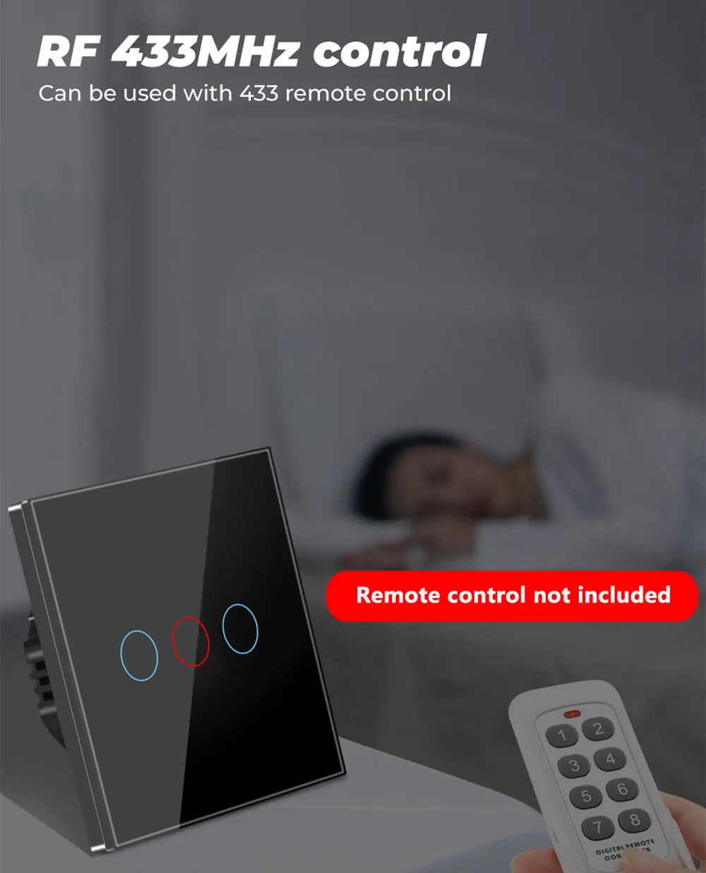 Умный сенсорный выключатель Aubess Tuya, с поддержкой Wi-Fi и 433 МГц
