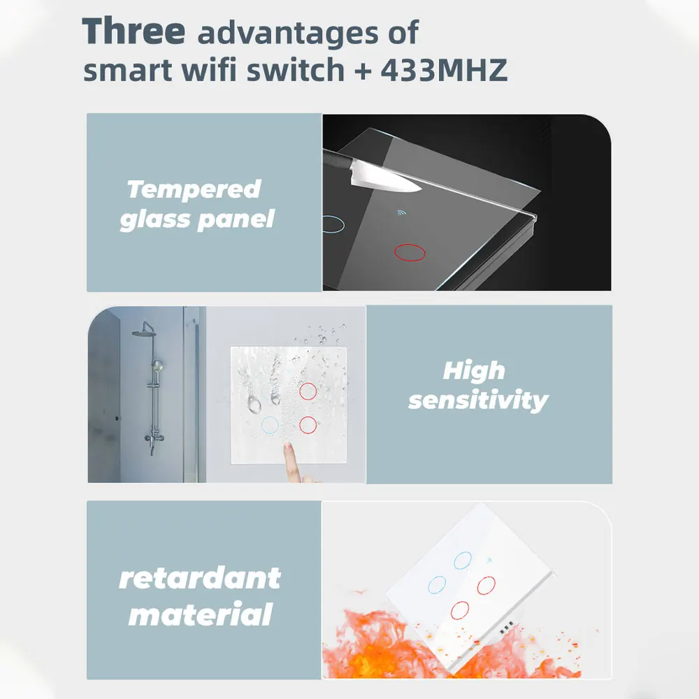 Умный Wi-Fi-переключатель со стеклянным сенсорным экраном, 433 МГц,...