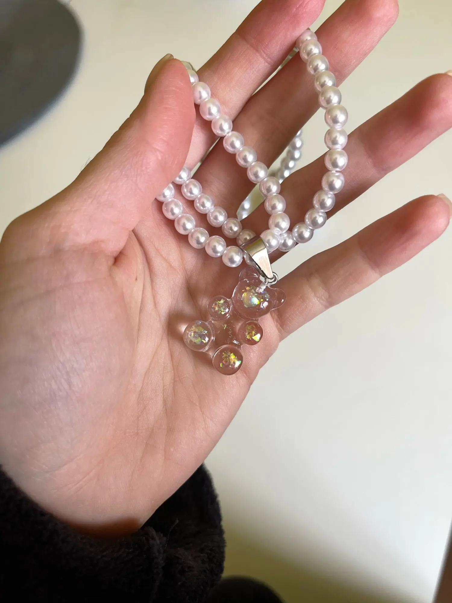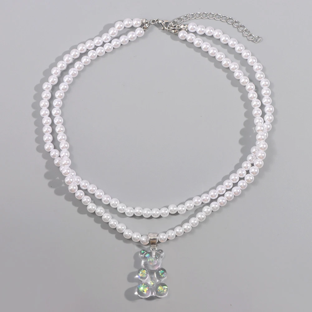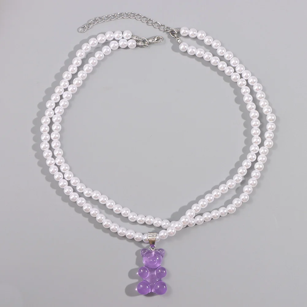 Двухслойное жемчужное ожерелье Y2k конфетных цветов с подвеской в виде медведя из жевательного жемчуга для женщин милая прозрачная подвеска в виде медведя ожерелье ювелирные изделия для воротника