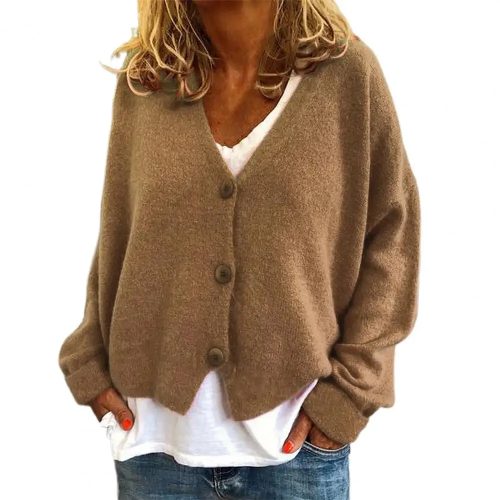 Женский однотонный кардиган с V-образным вырезом, с длинным рукавом
