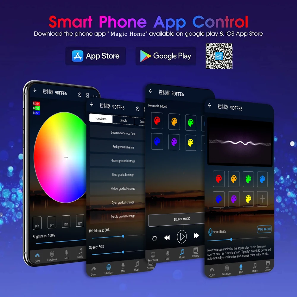 Особенности:SMD 5050 Светодиодная лента.Излучает Цвет:RGB (включая белый)Водонепроницаемость:IP20 не водонепроницаемый.Контроллер:Wifi контроллер, Bluetooth контроллер, инфракрасный контроллер.(Bluetooth и инфракрасный контроллер не включают батарею)Функция:【 WI-FI Conctroller】Голосовое управление, дистанционное управление с помощью приложения (приложение Magic Home), Совместимость с Amazon Alexa Echo Google Home Assistant, IFTTT.● Пульт дистанционного управления: даже если вы не дома, вы можете управлять смарт-светодиодной лентой вкл/выкл с помощью телефона через приложение Tuya или smart Life. Легко установить расписание для вашей умной светодиодной ленты. Подгоняйте свой домашний светильник, например, устанавливайте светильник s, чтобы включаться в сумерках или выключаться на рассвете.● Голосовое управление: Управляйте умной светодиодной лентой через свой голос с помощью Google Assistant. Просто дайте голосовую команду, чтобы включить/выключить или затемнить/осветить ваш светильник, даже переключите светильник на определенный цвет, как вам нужно.【Контроллер Bluetooth 】Синхронизация музыки, приложение дистанционного Управление (Happylighting APP), пульт ДУ с 24 кнопками Управление;.【Миллионные изменения цвета 】Выразите себя и сделайте свое пространство более креативным с помощью умной светодиодной ленты. Выберите из 16 миллионов цветов и оттенков белого, чтобы мгновенно изменить внешний вид и атмосферу вашей комнаты. Управляйте удаленно с помощью вашего умного устройства, создавайте индивидуальные сцены и раскрывайте свое творчество. Встретить ваши вечерние, читать, светильник для отдыха.【Несколько Uses】Эту лампу можно использовать в любом месте, где вам нужен красочный светильник, такой как Домашний Светильник для помещений, отель, конференц-зал, музей, рестораны, бар, кафе, праздник.