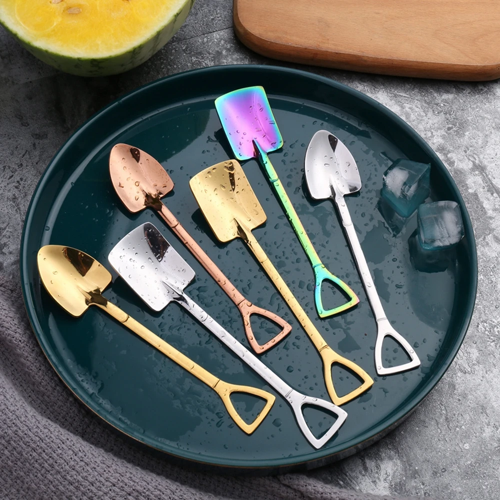 2 шт. кофейная ложка набор столовых приборов модная посуда из нержавеющей стали Ретро железная лопата, лед, крем ложка совок креативная ложка чайные ложки