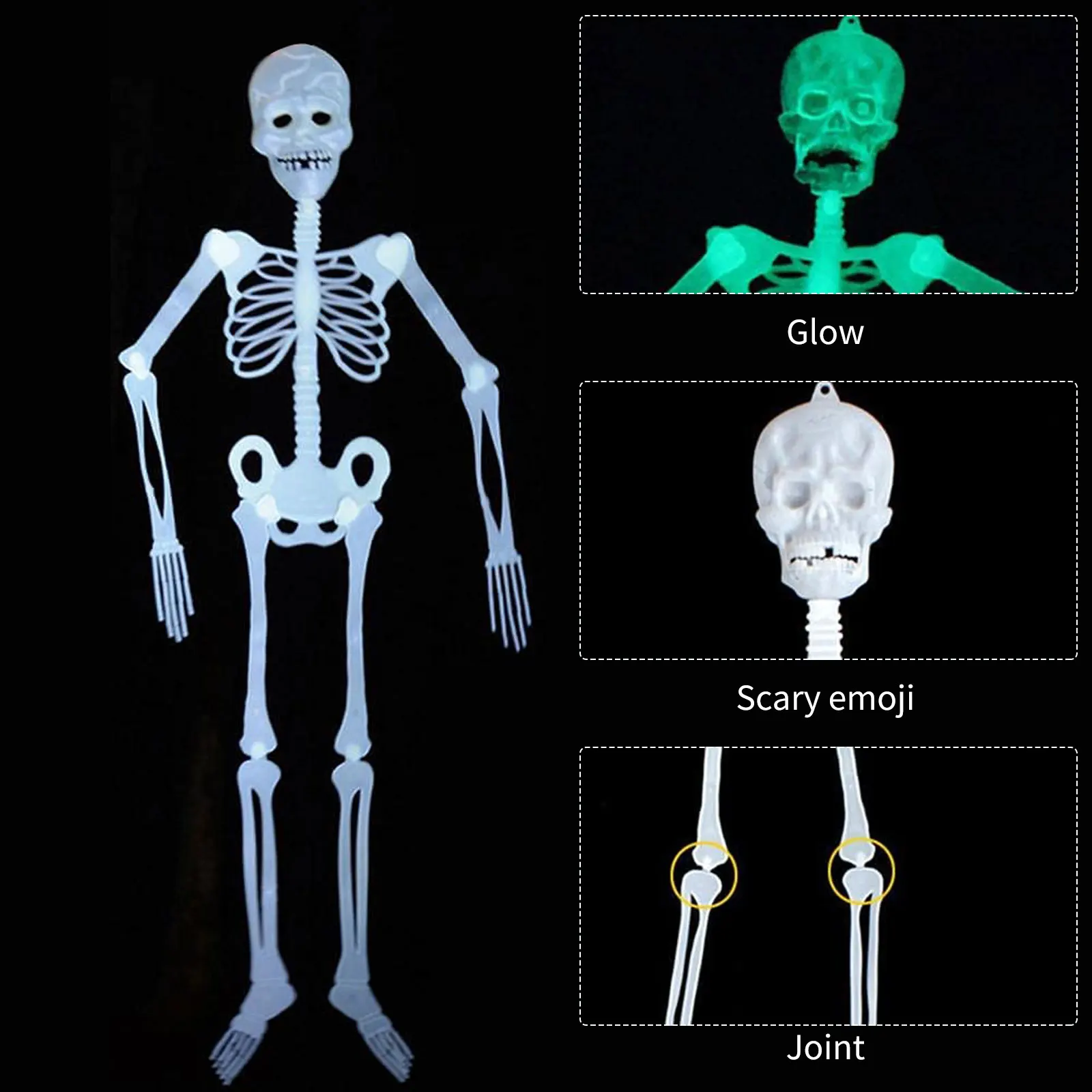 Светящийся скелет для Хэллоуина, полностью светящийся в темноте скелет, скелет с подвижными суставами, опора для Хэллоуина, вечерние украшения для сада на открытом воздухе