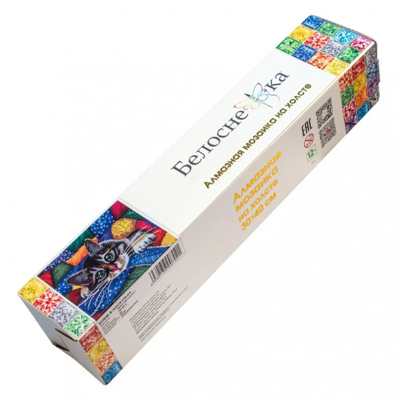 "Котик в лоскутках" Алмазная мозаика на холсте 30*40. Белоснежка. 702-BK-S