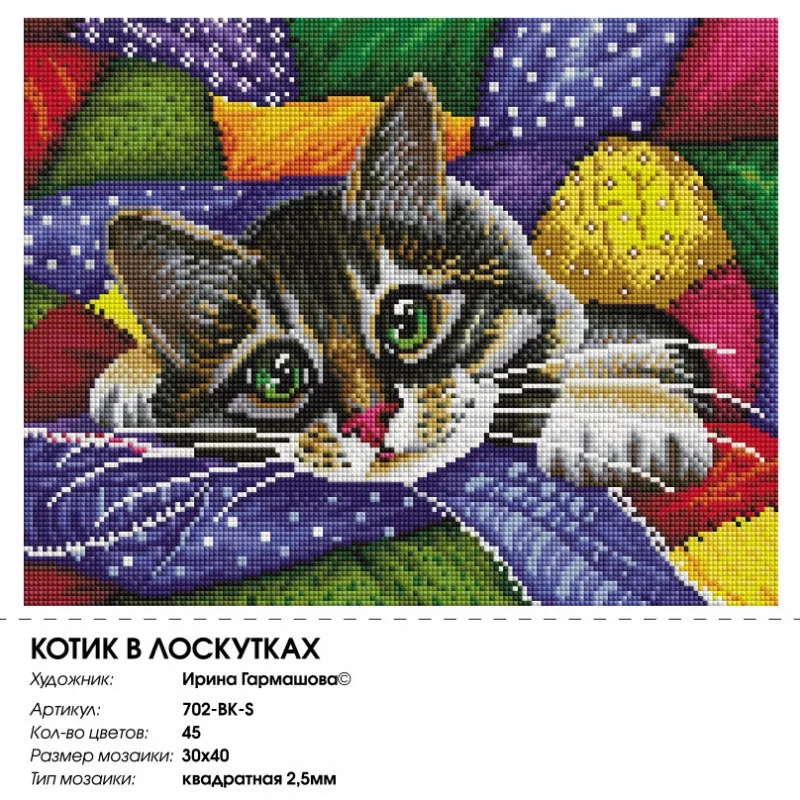 Набор для творчества Алмазная мозаика: 702-bk-s Кот в обрезках
