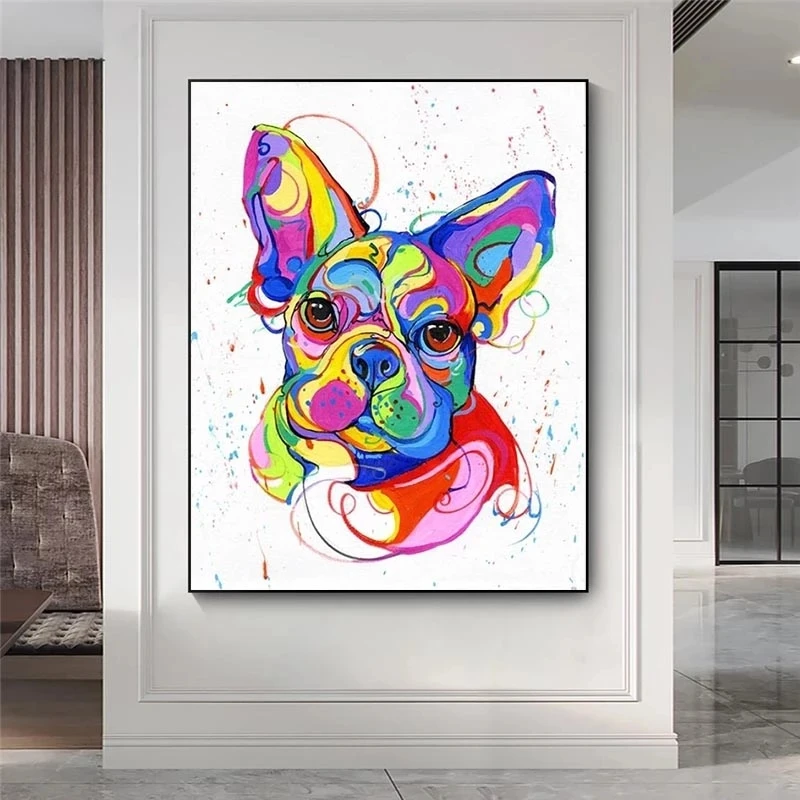 Картина в виде французского бульдога с красочными животными, Настенная картина на холсте, постер для гостиной, спальни, офиса, украшение для дома