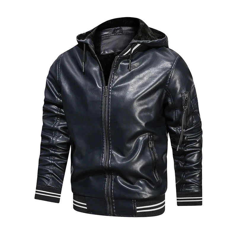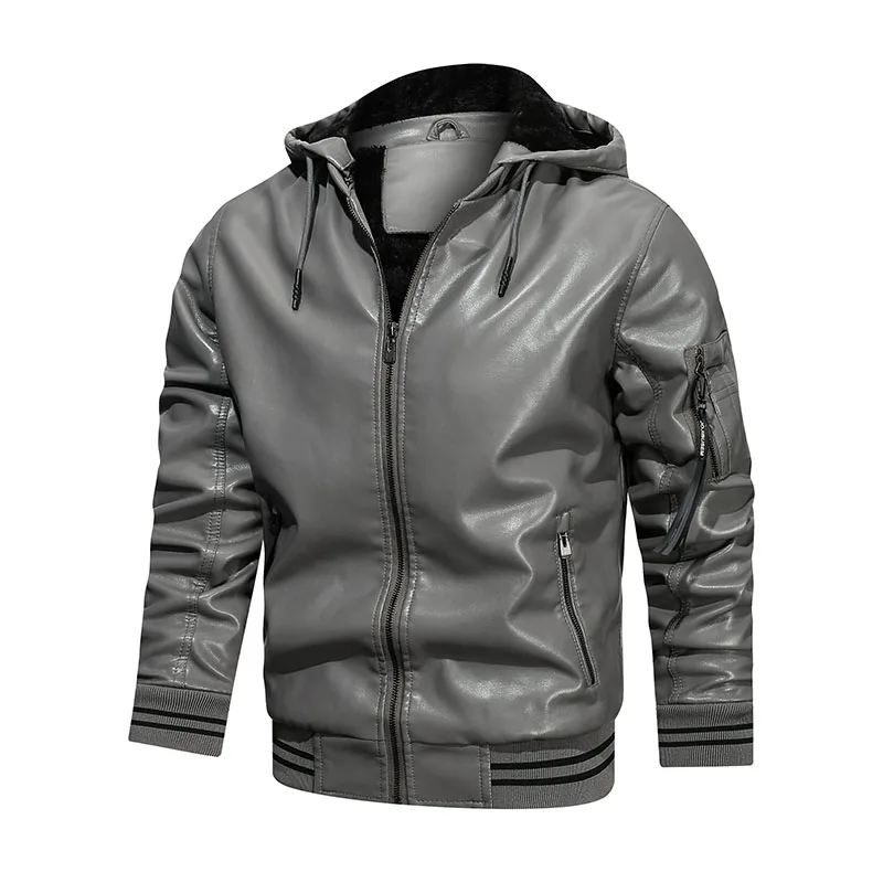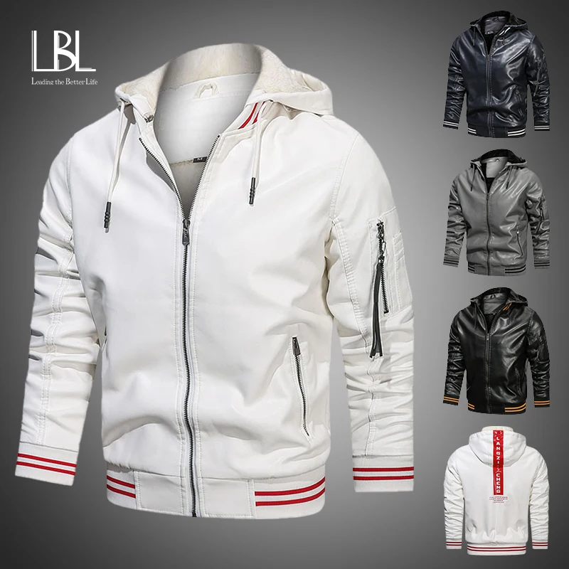 Мужская повседневная Байкерская кожаная куртка с капюшоном, модная ...
