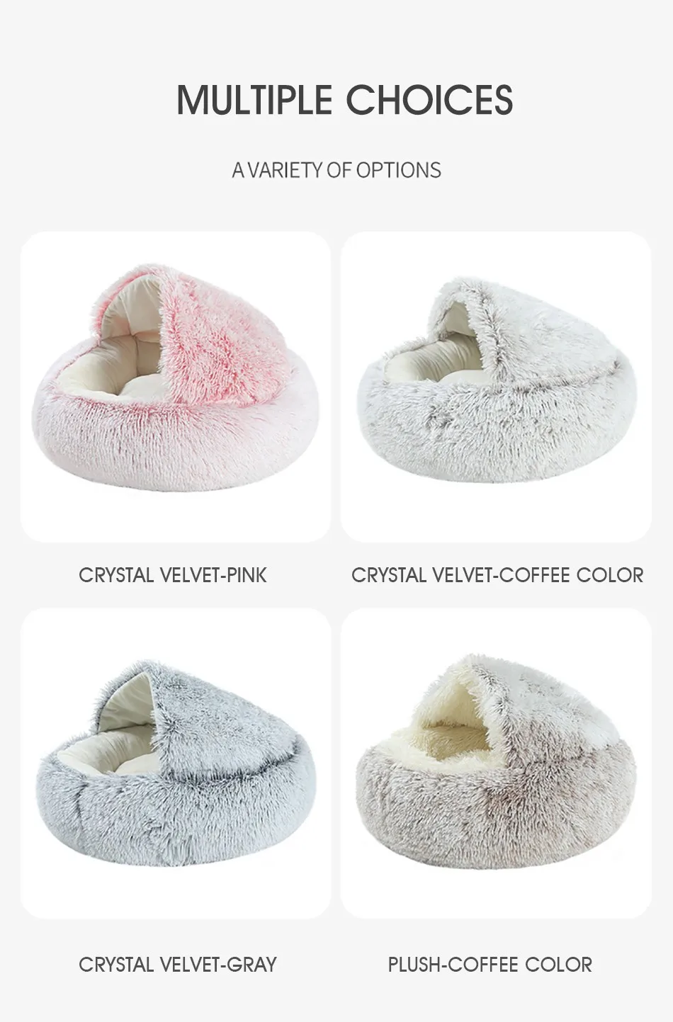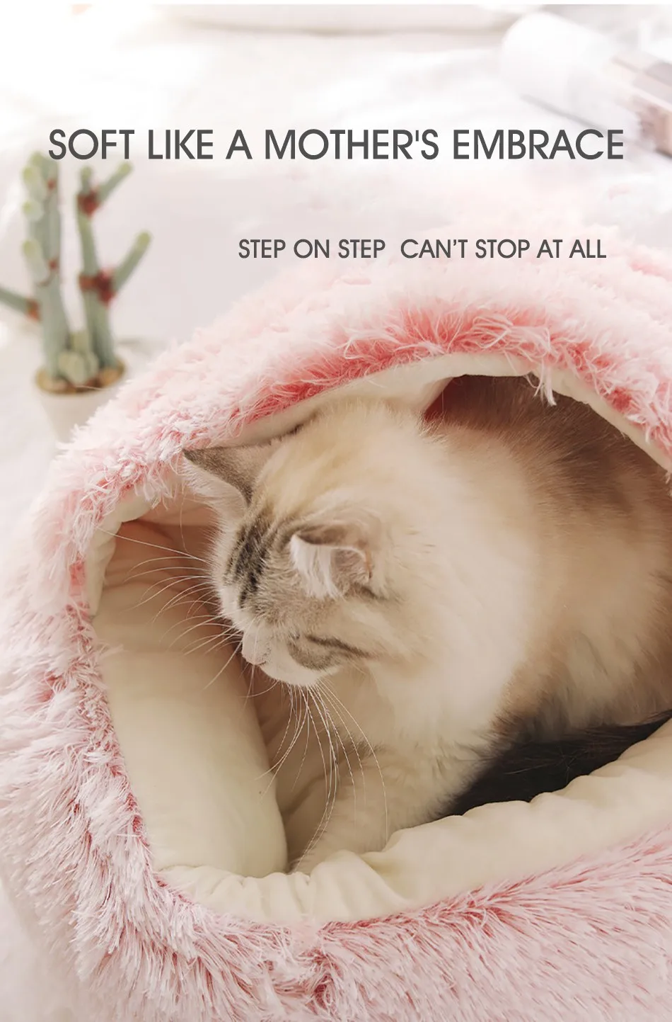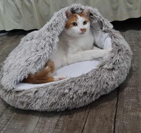 Кровать для домашних животных 2 в 1, теплый длинный мягкий домик для кошки, кровать для собаки, плюшевая подстилка