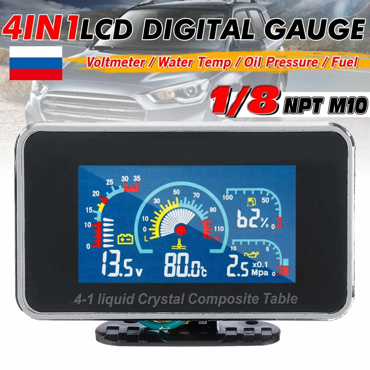 ЖК-дисплей 4 в 1 Автомобильный измеритель давления масла вольтметр датчик температуры топлива и воды 18 NPT датчик давления масла 12 В24 В