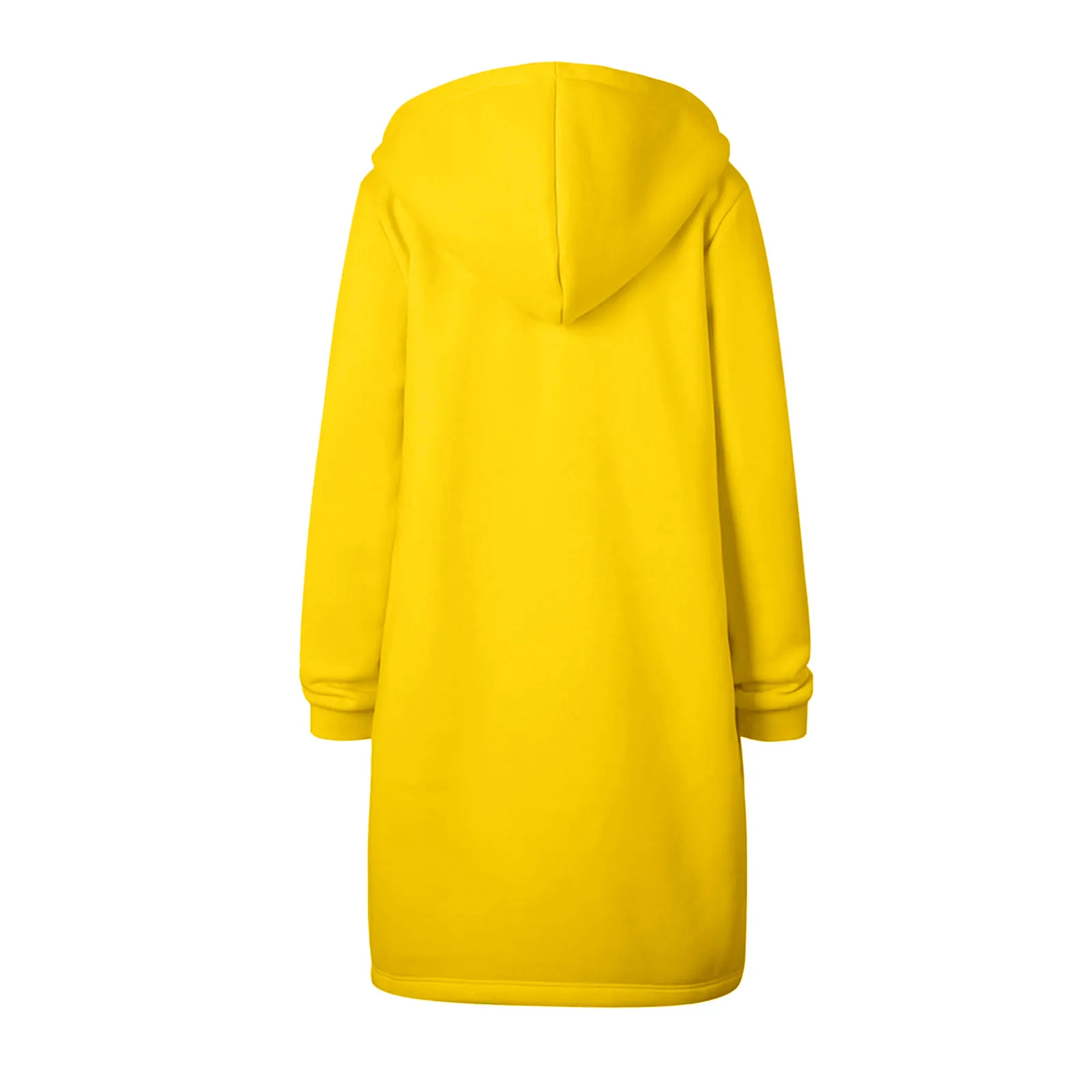 Однотонная женская зимняя теплая толстовка на молнии с капюшоном, свитшот, длинное пальто, куртка, топы, толстое теплое одеяло с капюшоном, зимняя верхняя одежда 4