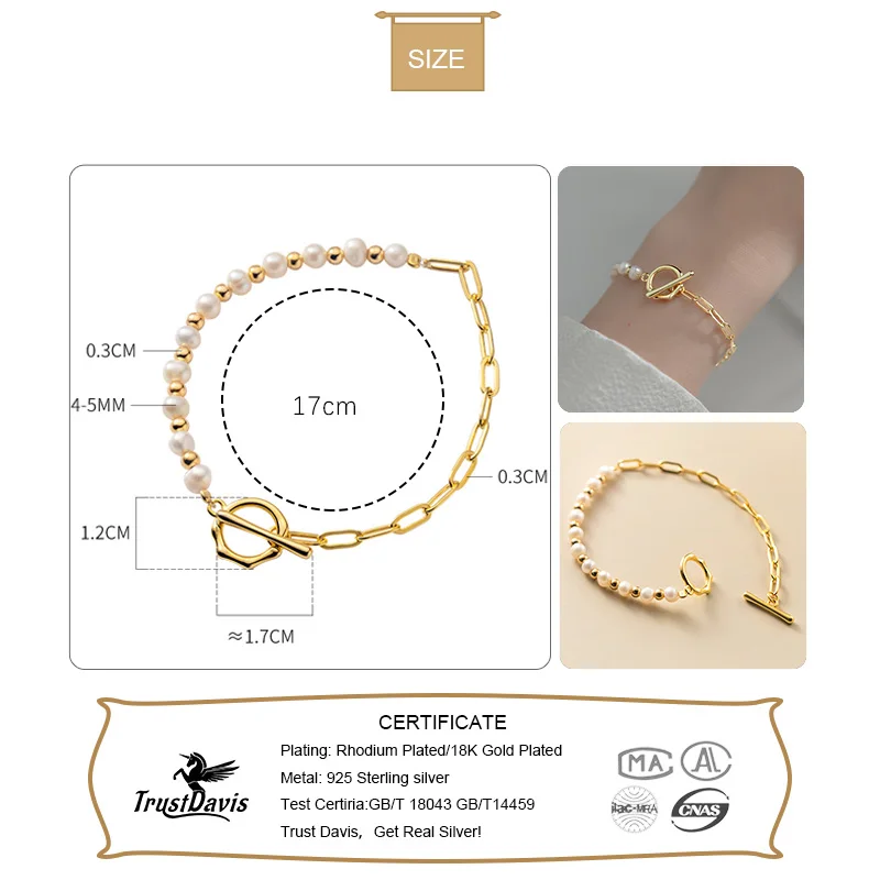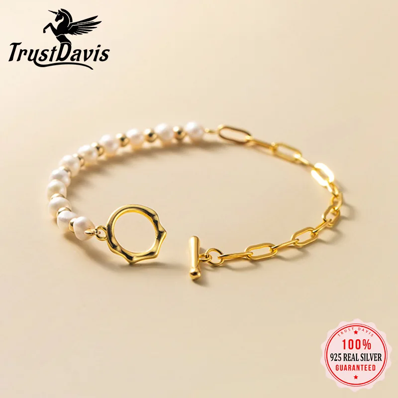 Trustdavis роскошный 925 Стерлинговое Серебро Модный милый пресноводный жемчуг OT цепь браслет для женщин Свадебные ювелирные изделия DA2394