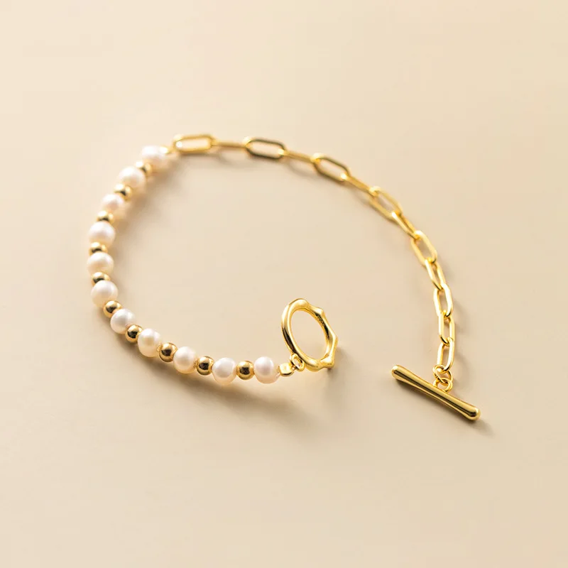 Браслет-цепочка женский из серебра 925 пробы с пресноводным жемчугом