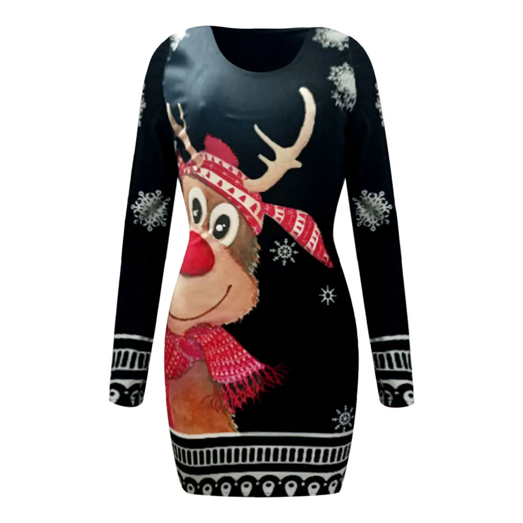 Рождественское платье с принтом, женское осенне-зимнее повседневное приталенное мини-платье с длинным рукавом и принтом деда мороза, новый дизайн 2021