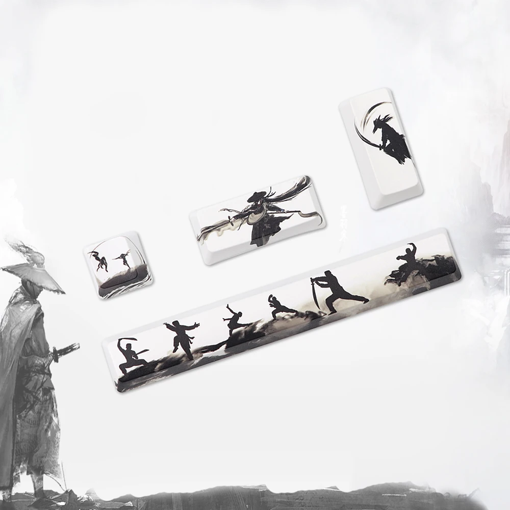 Пятисторонняя покраска PBT, крышка для ключа лотоса, промежуточная балка 6,25u, OEM профиль, чернила для цветения вишни, колпачок для ключа панды в старинном стиле