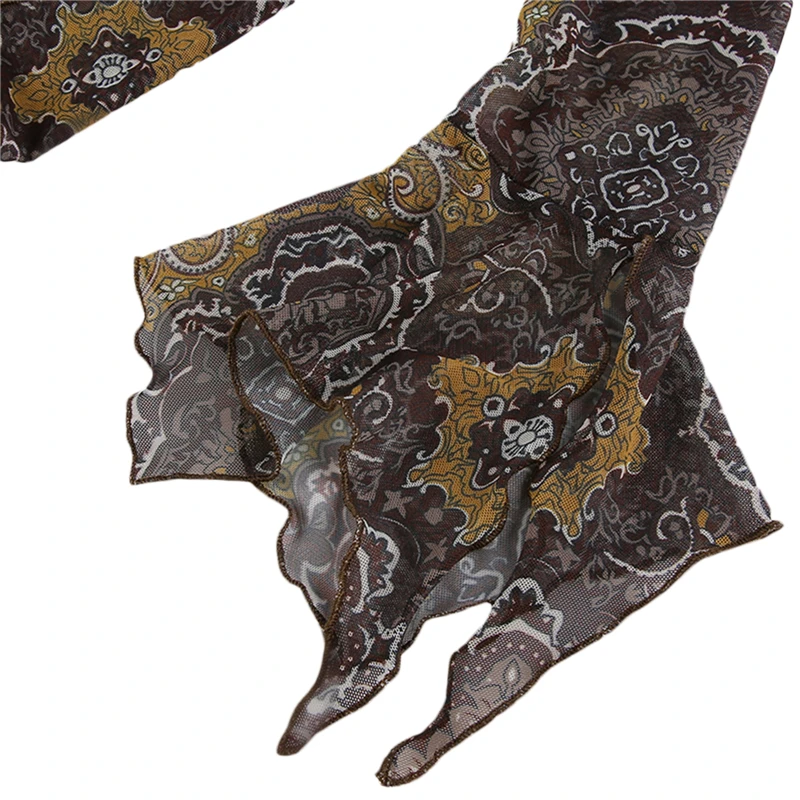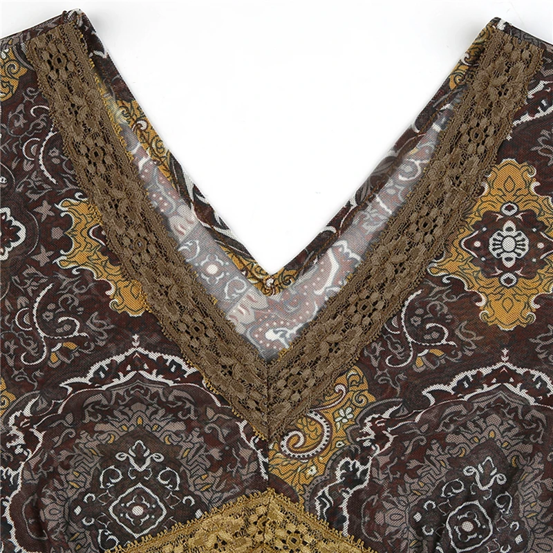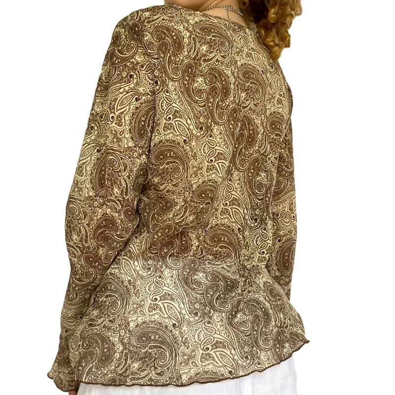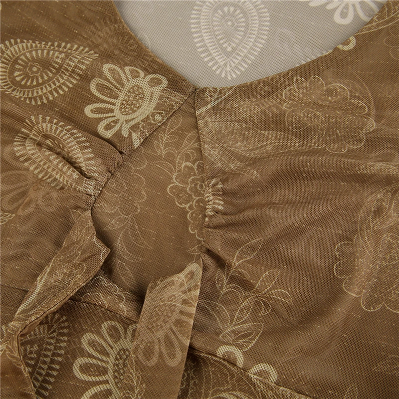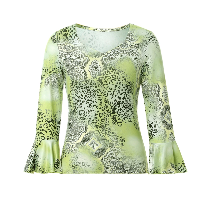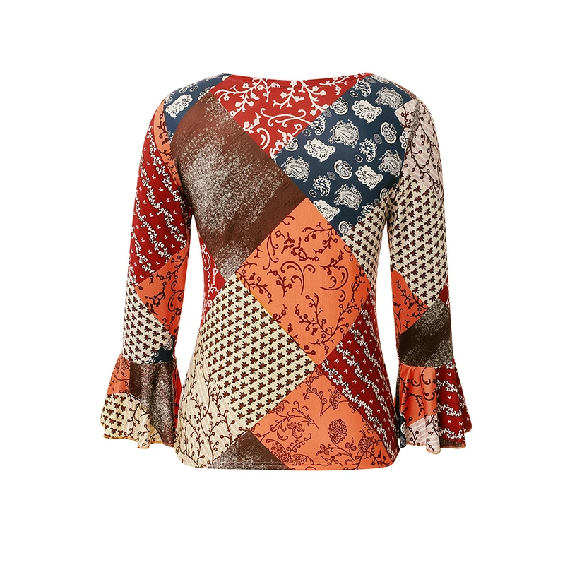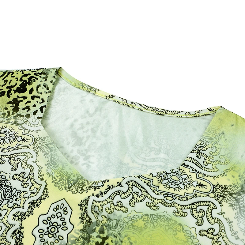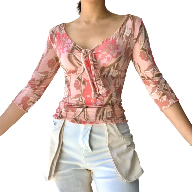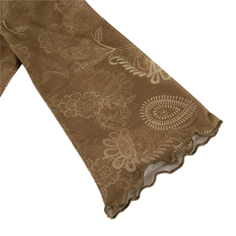 Женская футболка Xingqing, цвета хаки, с винтажным принтом, V-образным вырезом, расклешенными длинными рукавами, Y2K